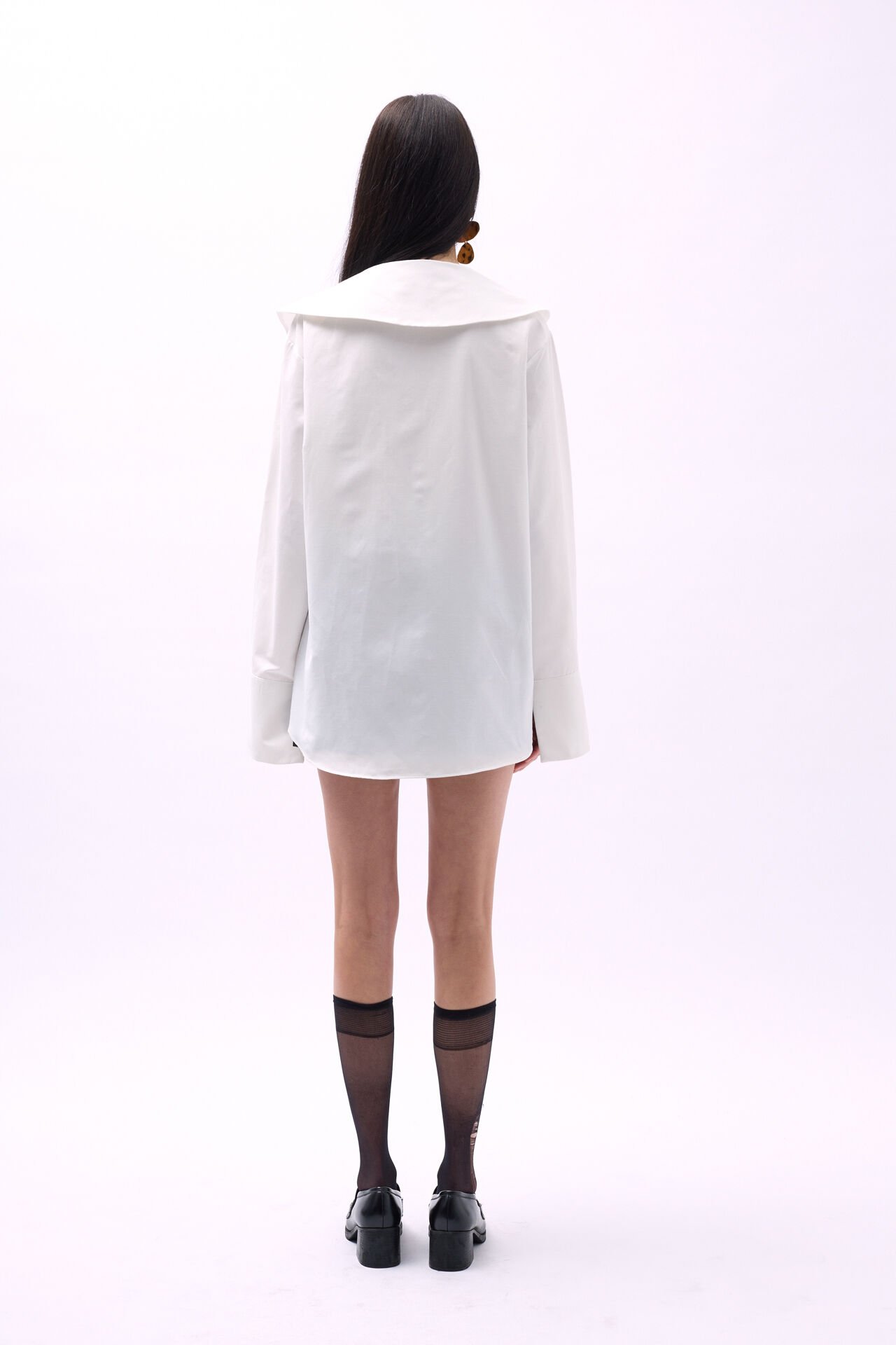 Toptan Geniş Yaka Volan Kol Beyaz Gömlek