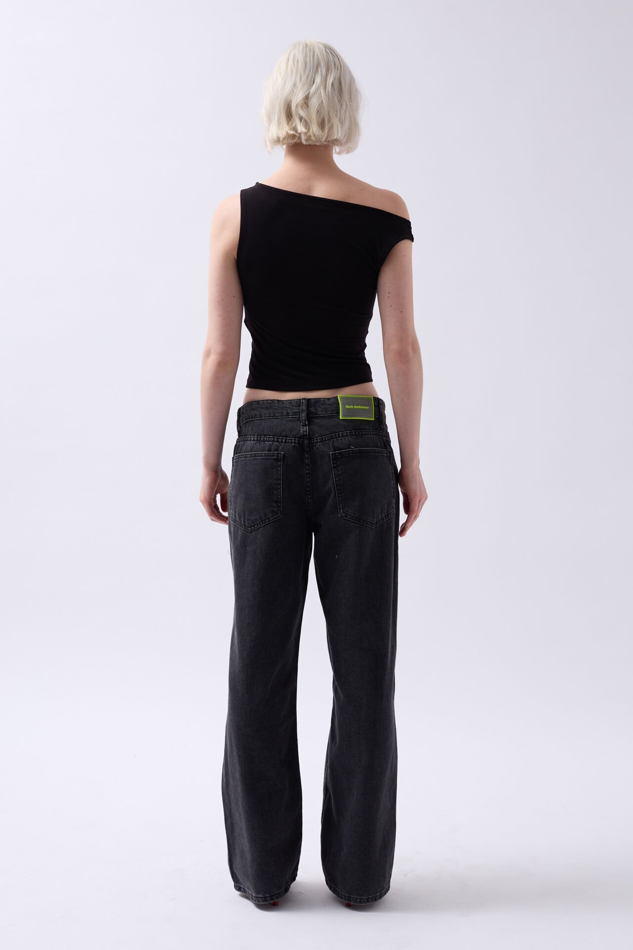 Toptan Kayık Yaka Yırtmaç Detay Siyah Bluz