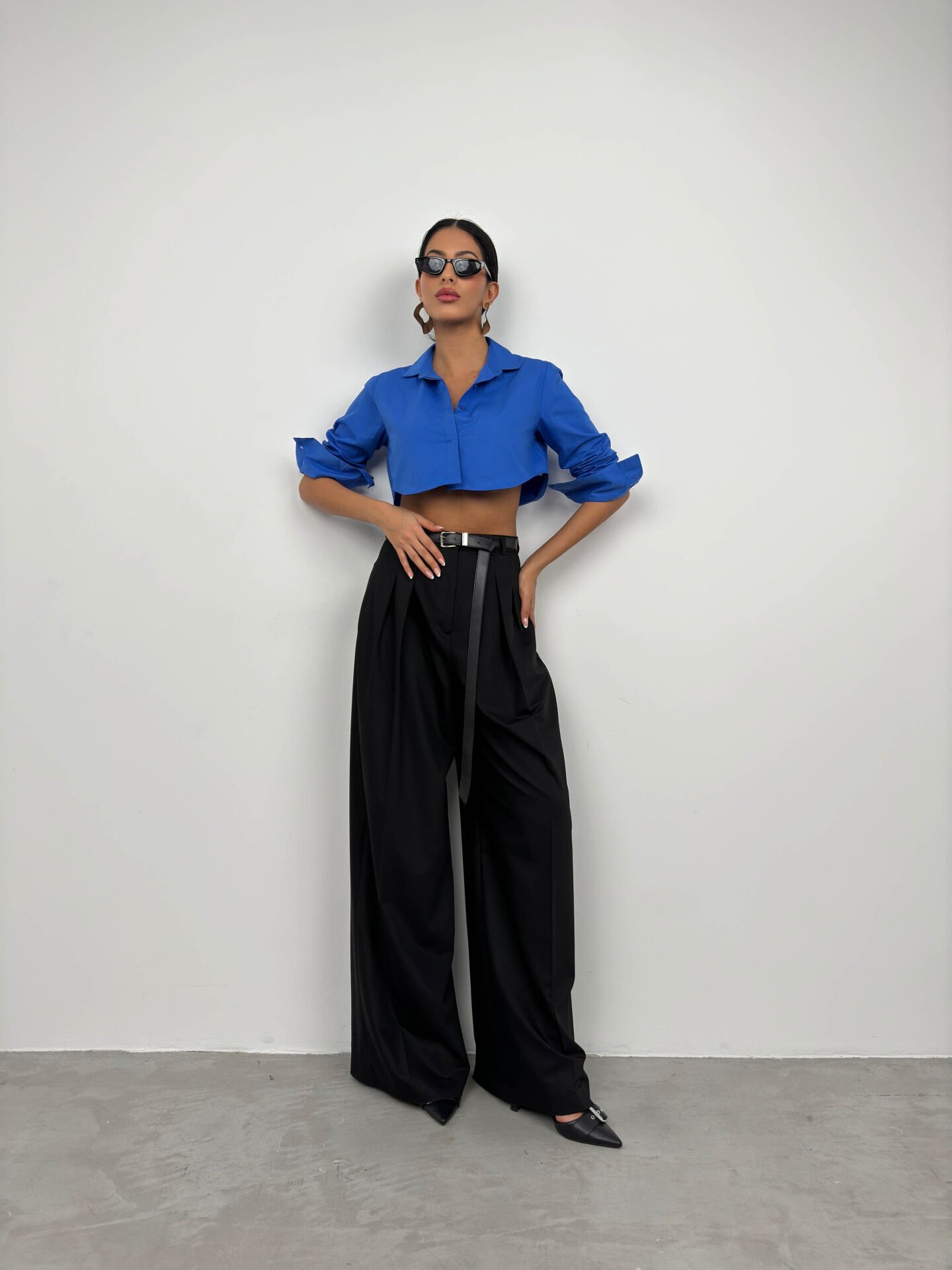 Toptan Manşet Detay Saks Crop Gömlek