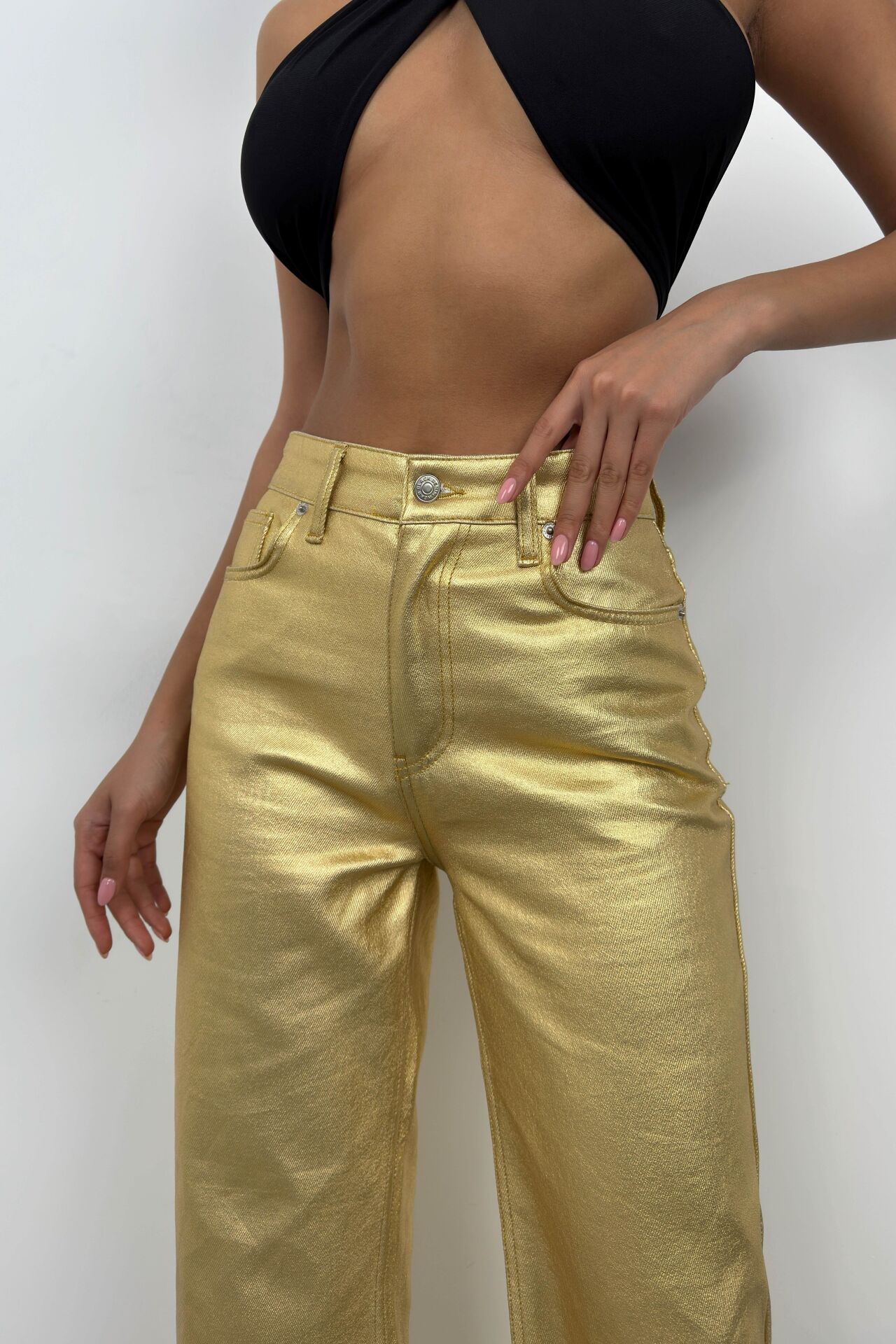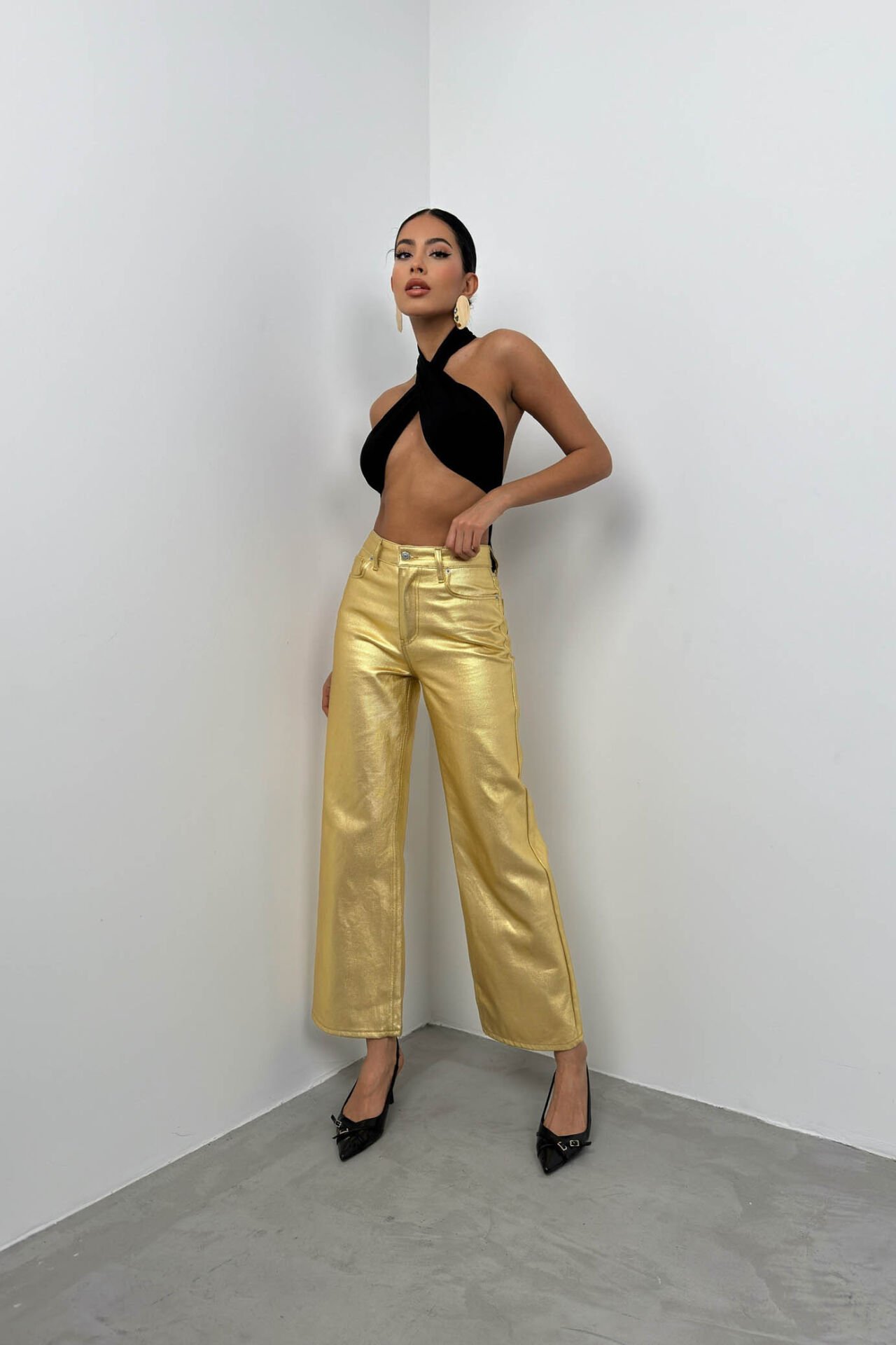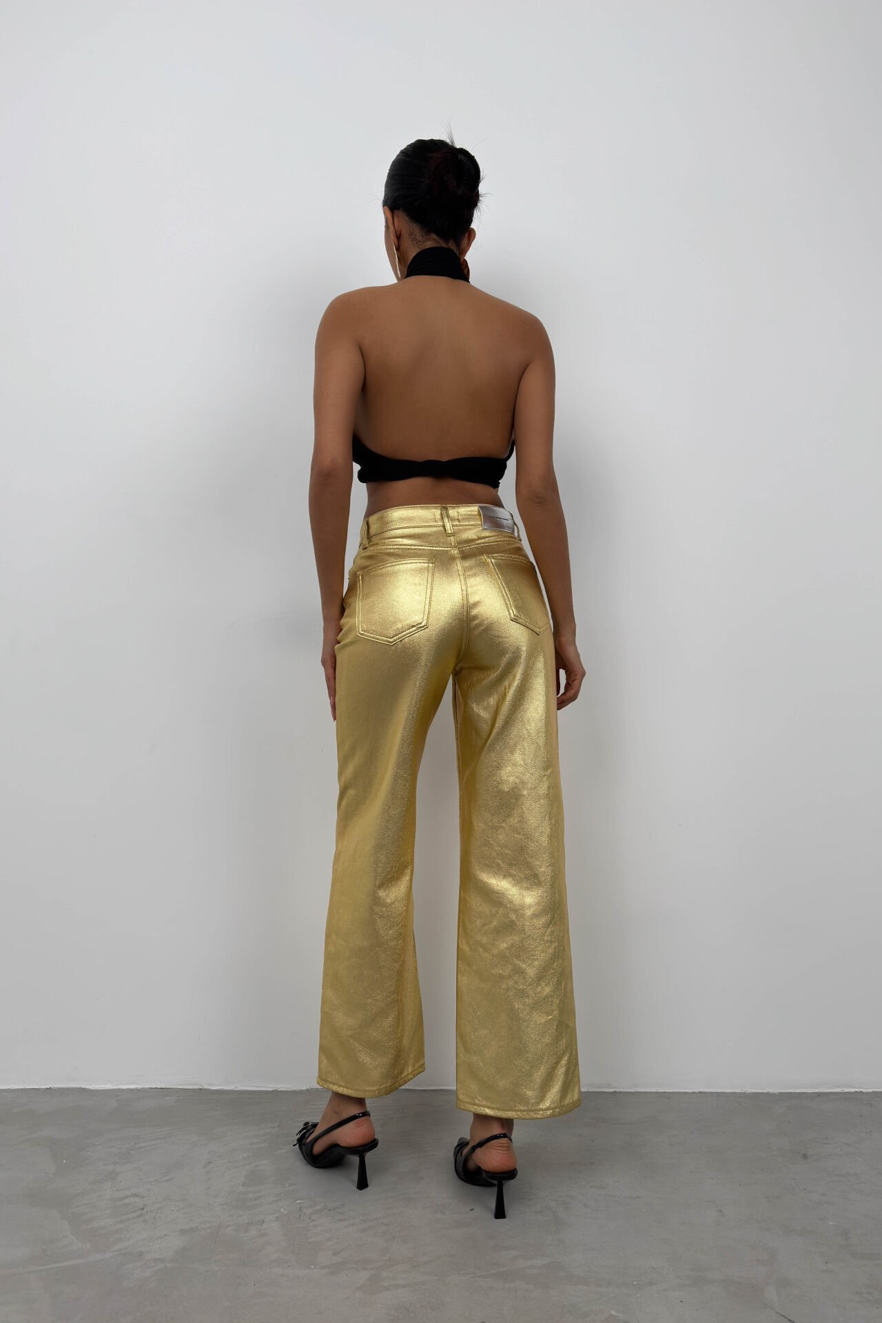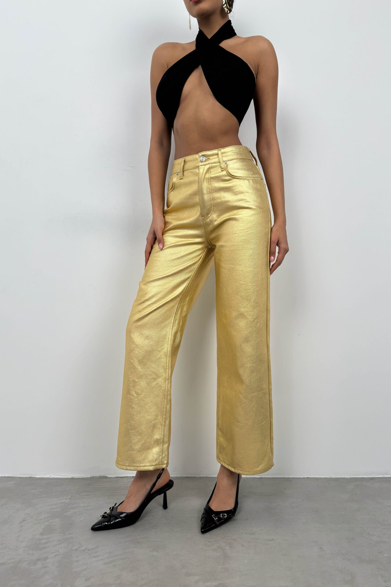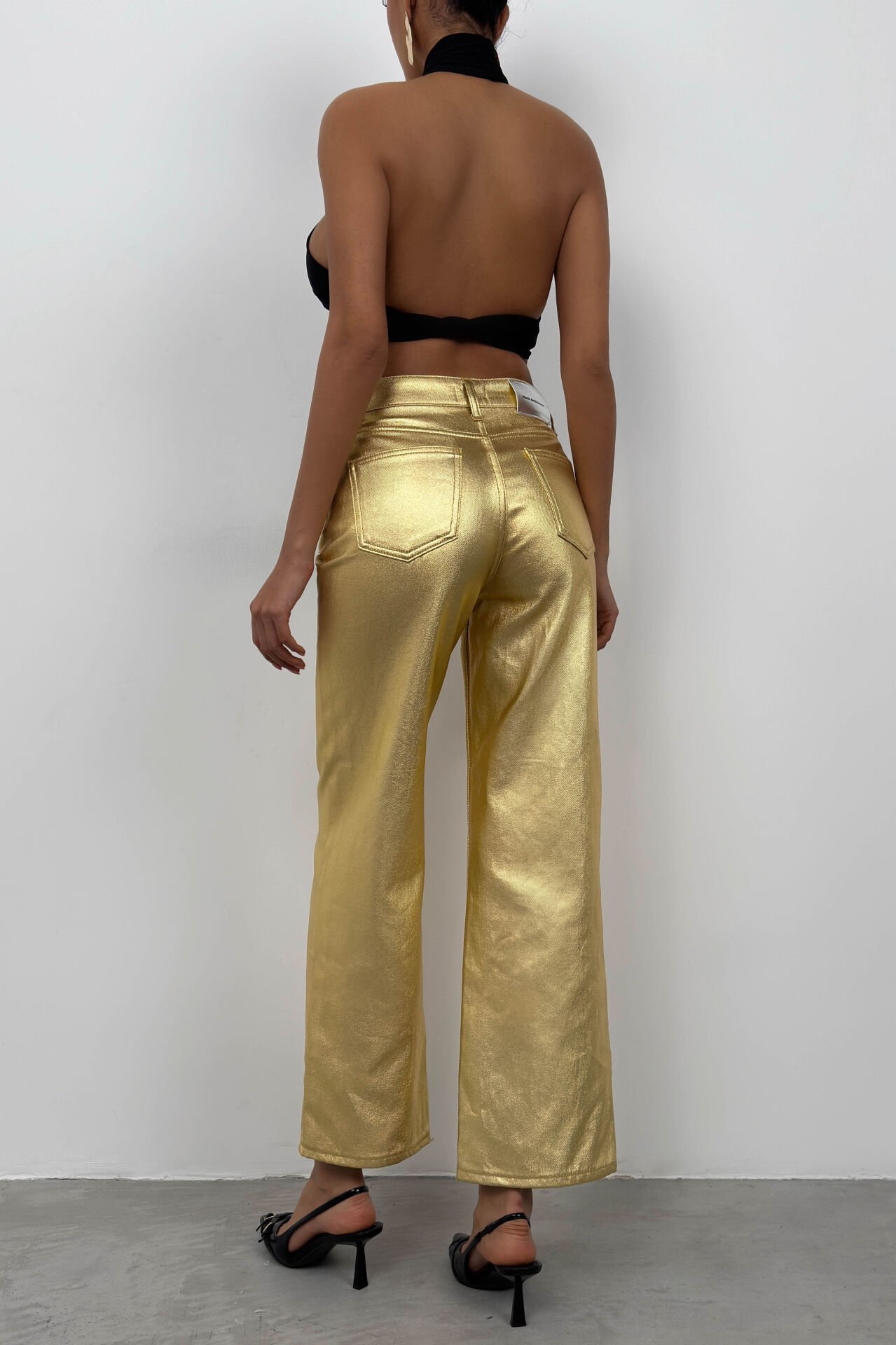Toptan Metalik Gold Yüksek Bel Pantolon