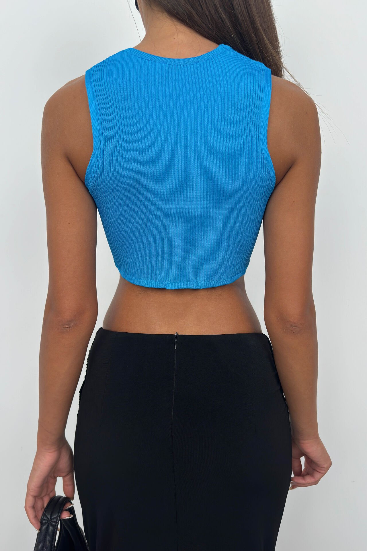 Toptan Ön Bağlamalı Mavi Crop Bluz