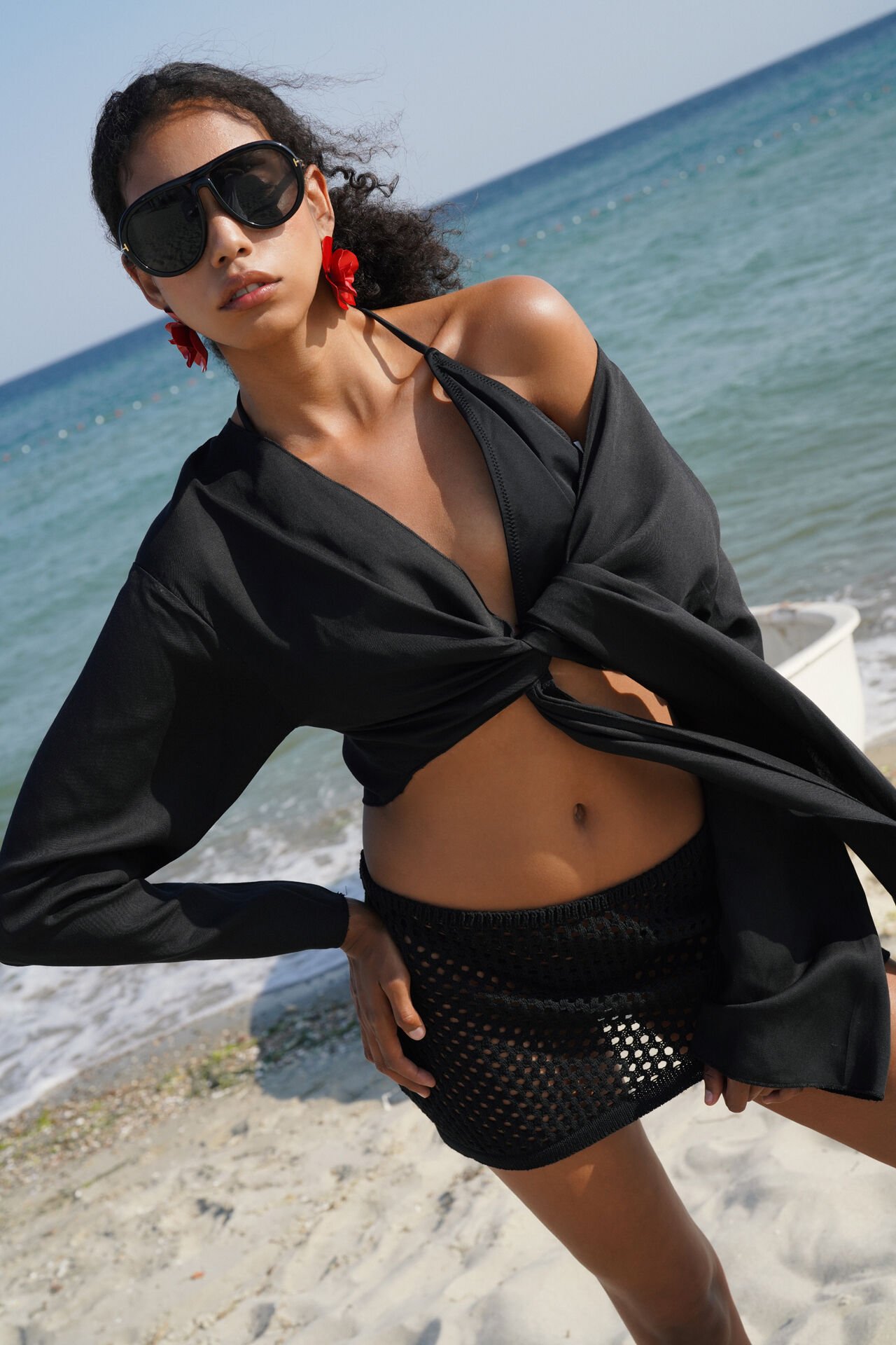 Ajurlu Triko Örgü, Transparan, Mini Etek