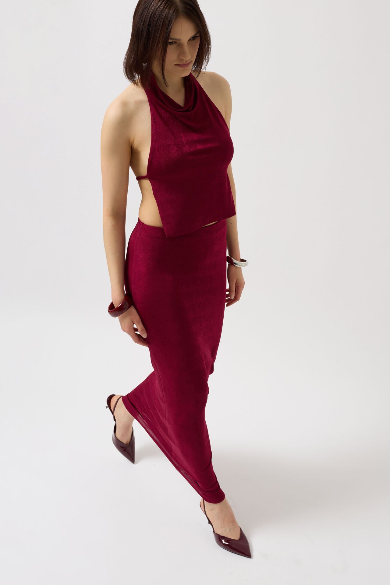 Toptan Parlak Kumaş Maxi Bordo Etek