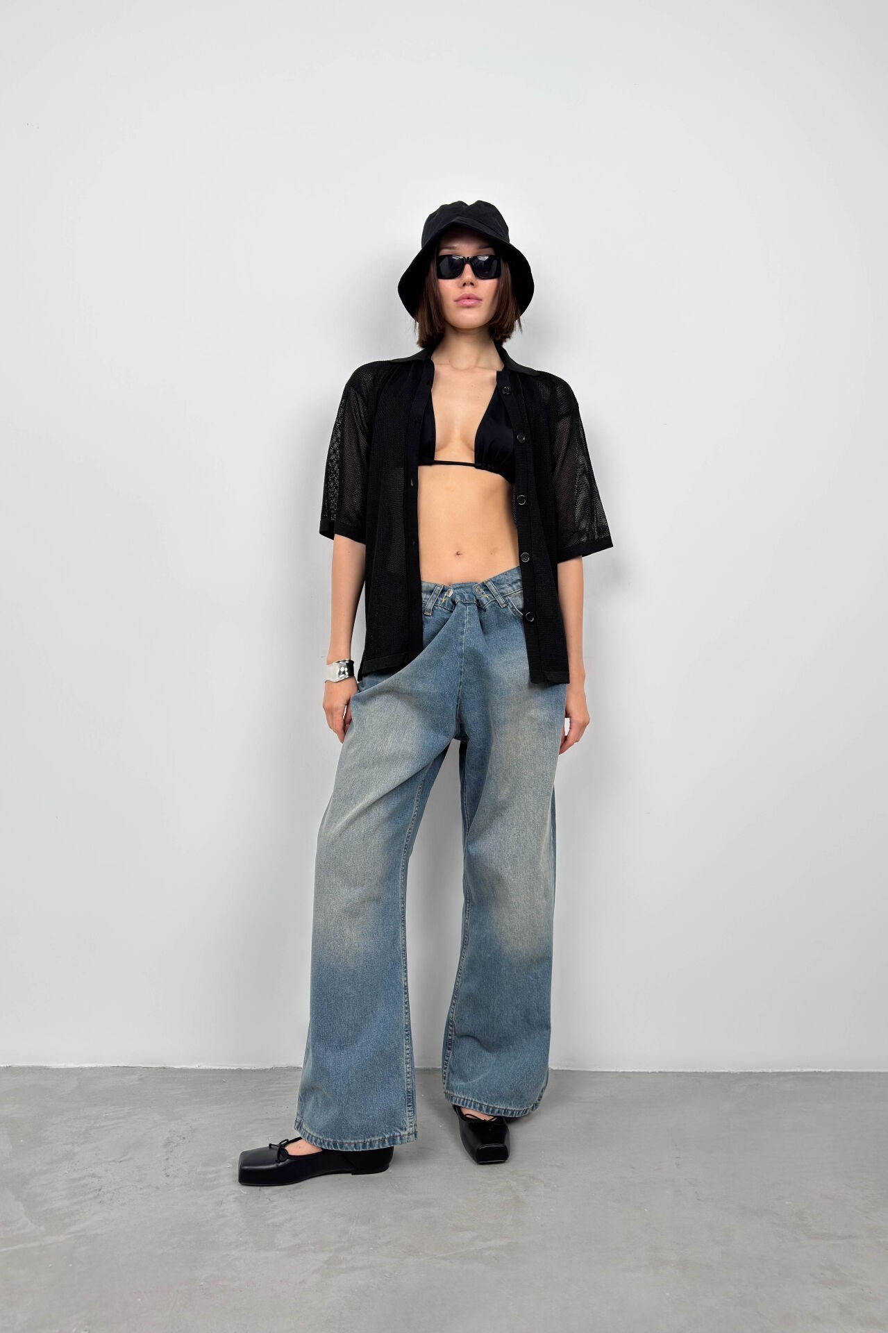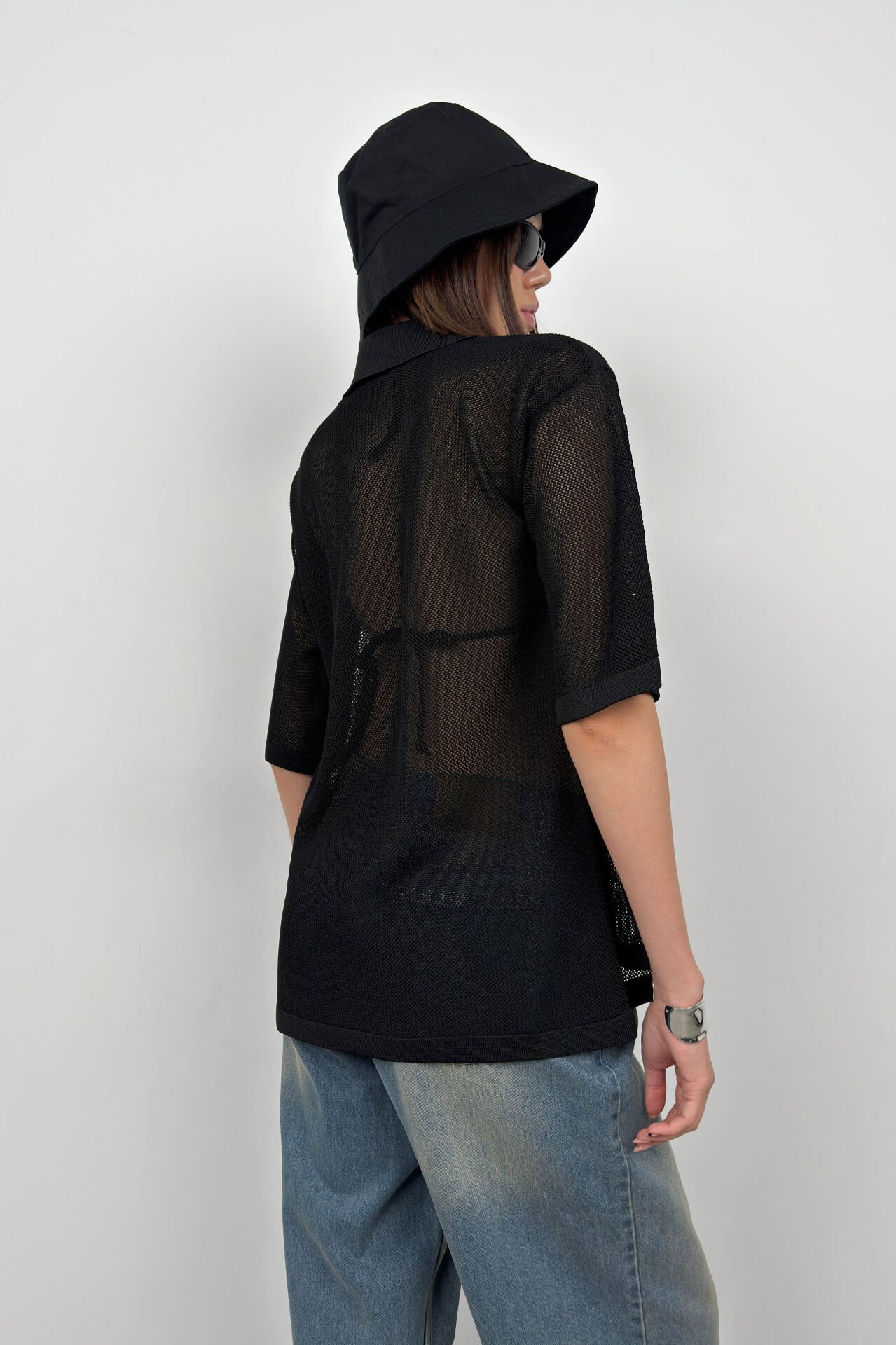 Polo Yaka, Yarım Kollu, Anvelop Kapama, Biyeli, Uzun Boylu, Fileli Bluz