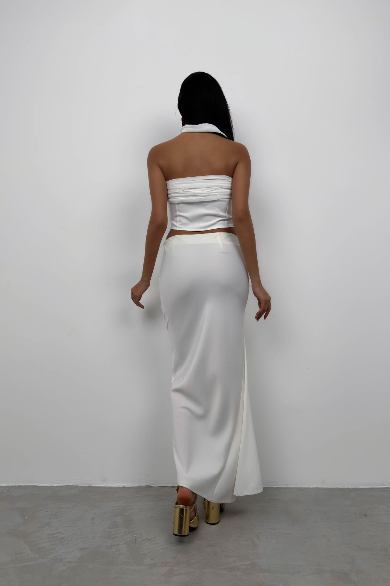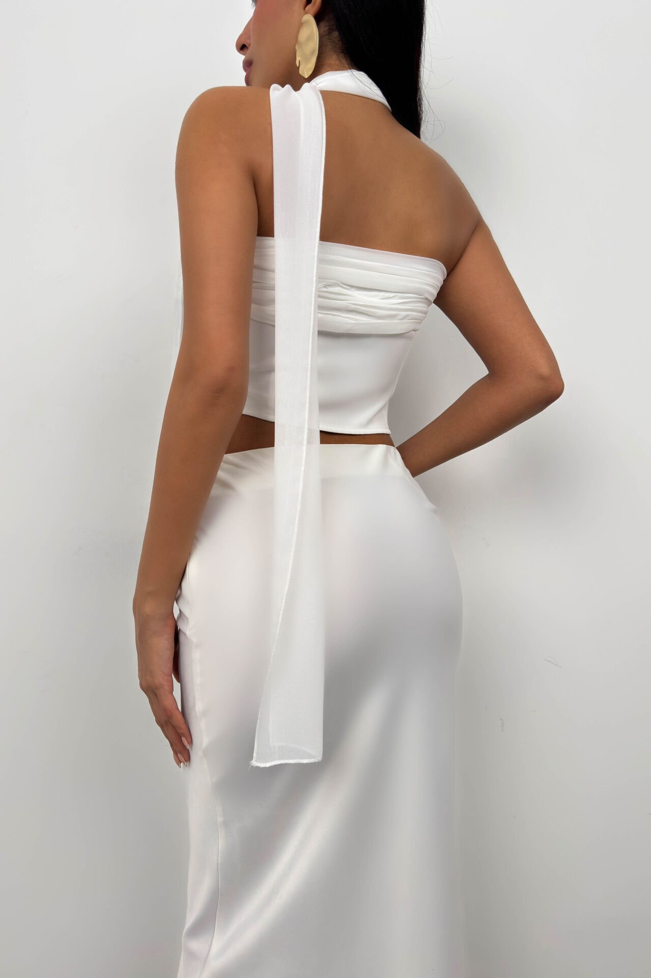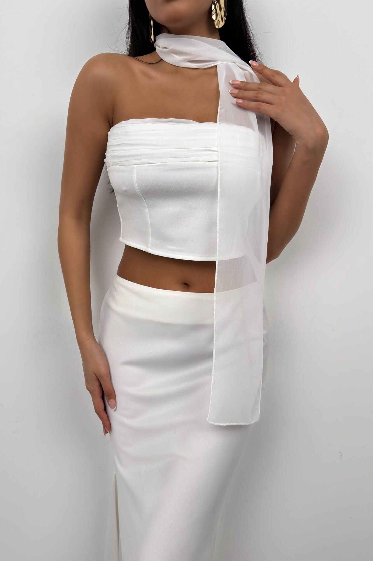 Şal Aksesuarlı, Straplez, Crop, Bluz