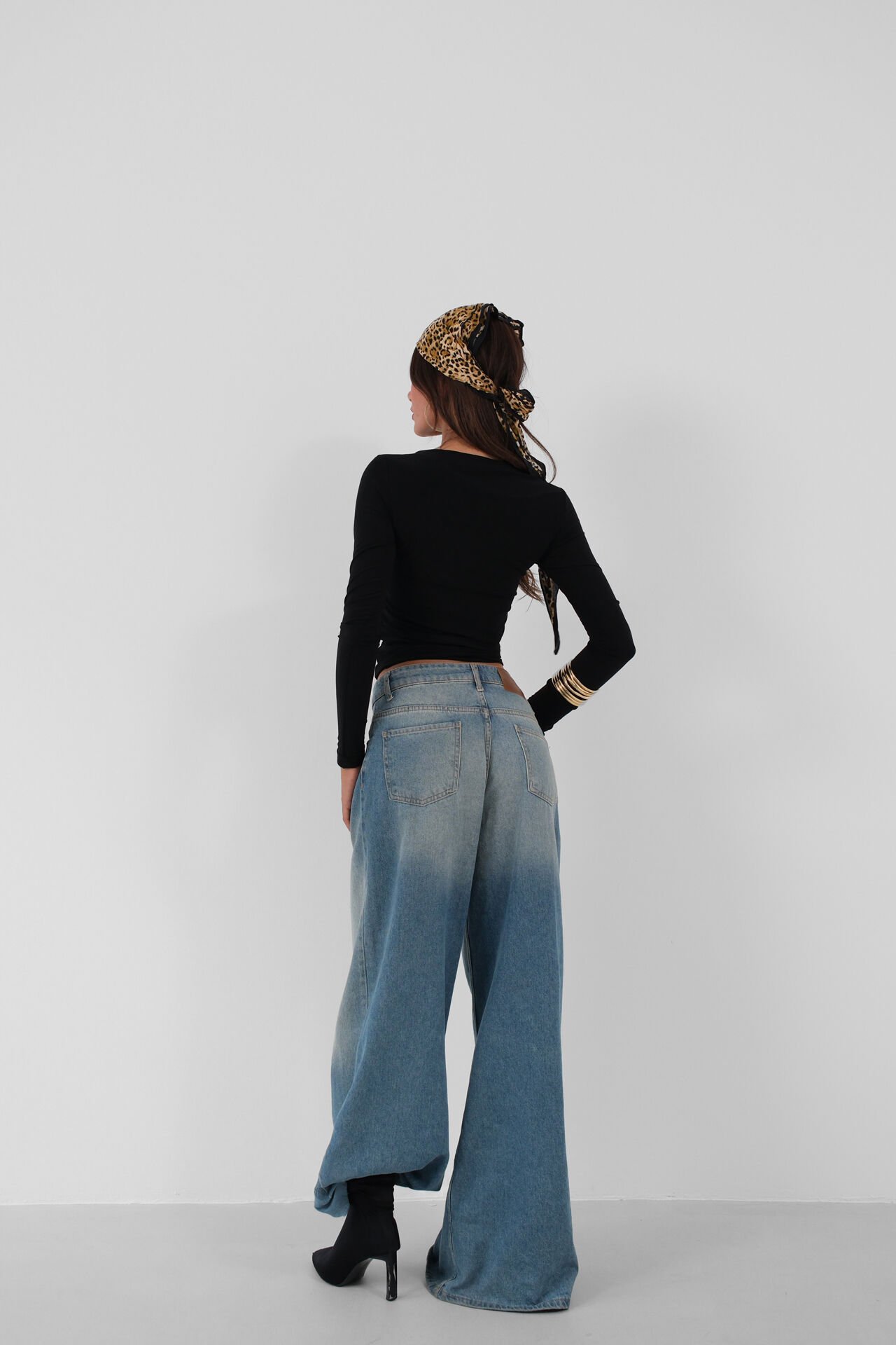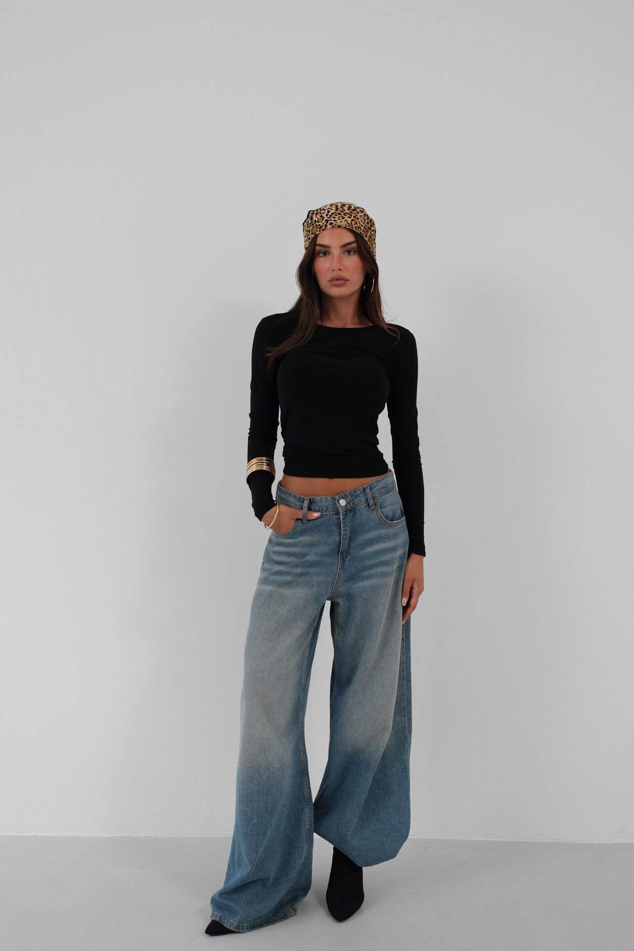 Toptan Sıfır Yaka Basıc Siyah Bluz