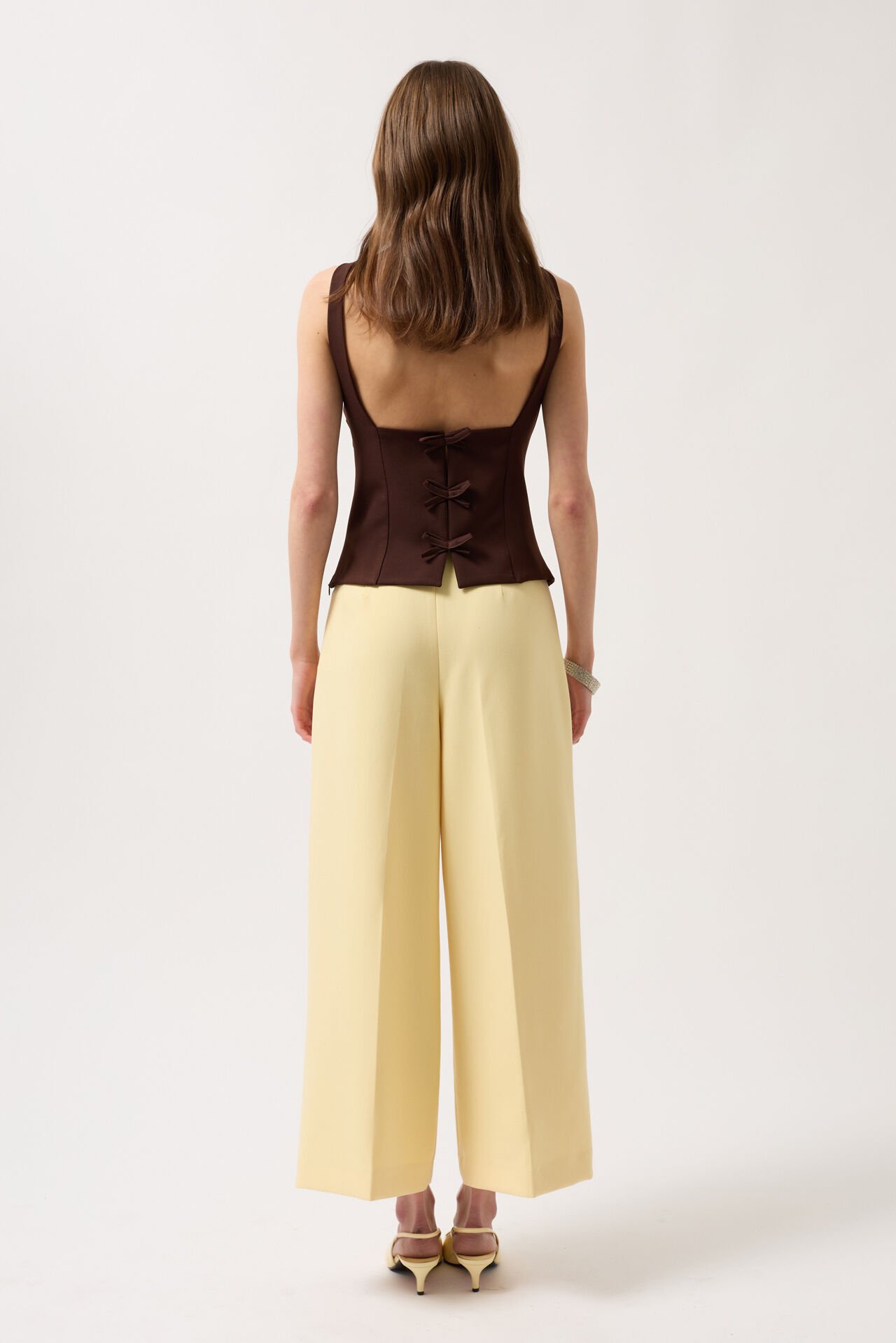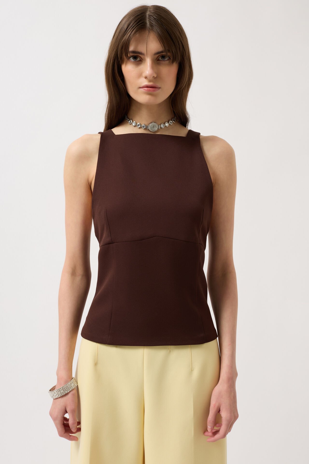 Toptan Sırt Kurdele Detay Kahverengi Bluz