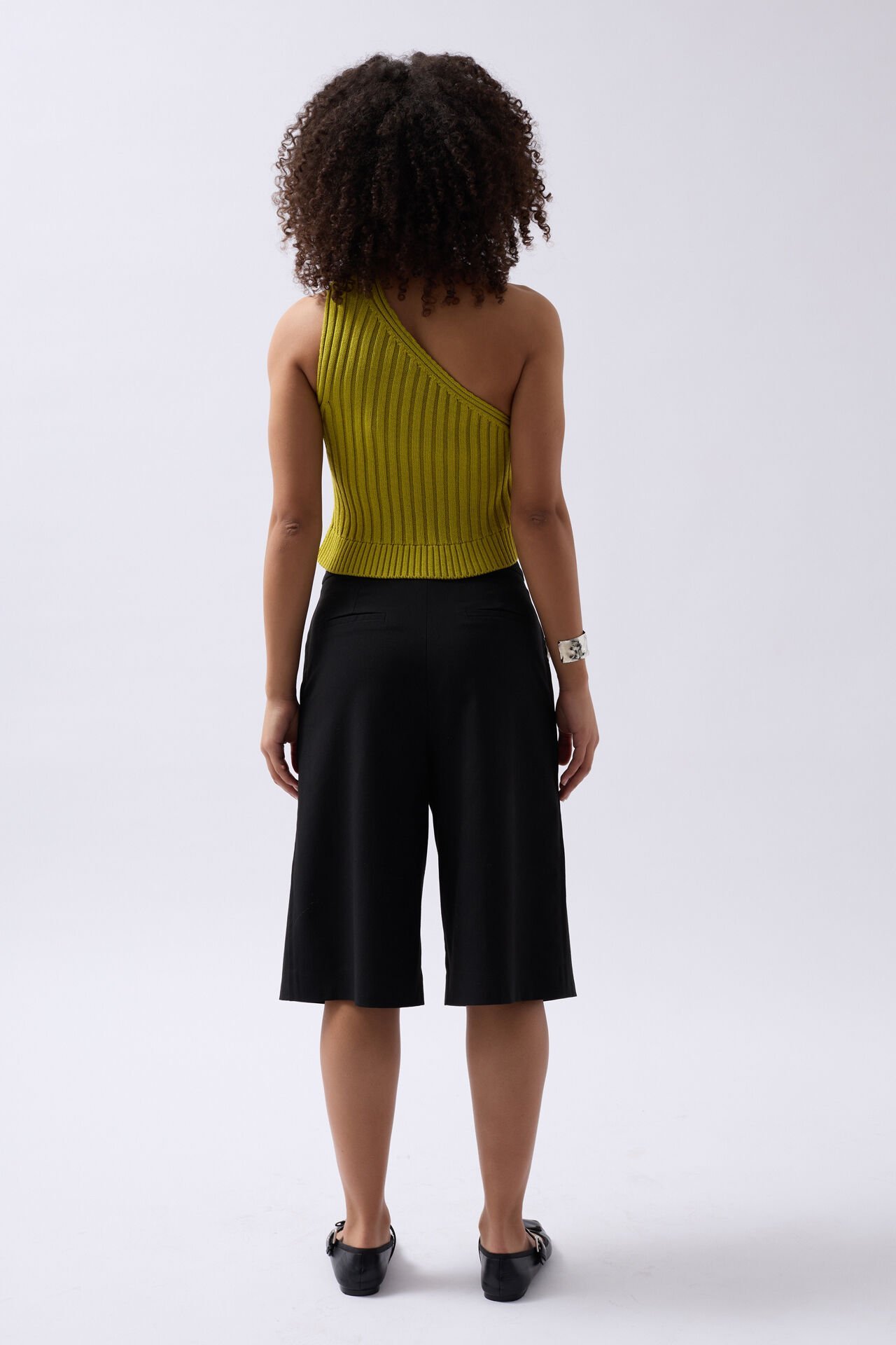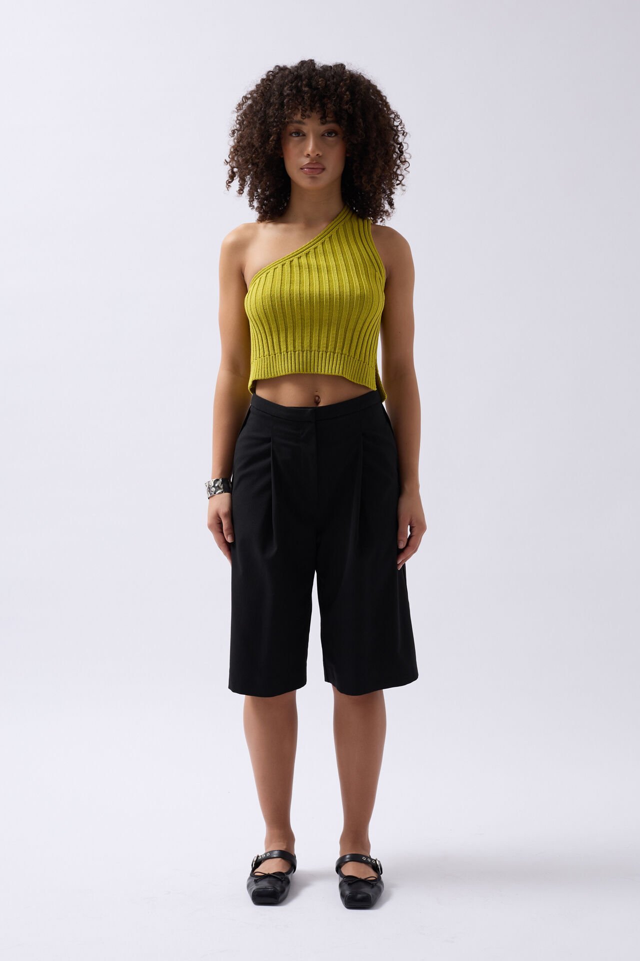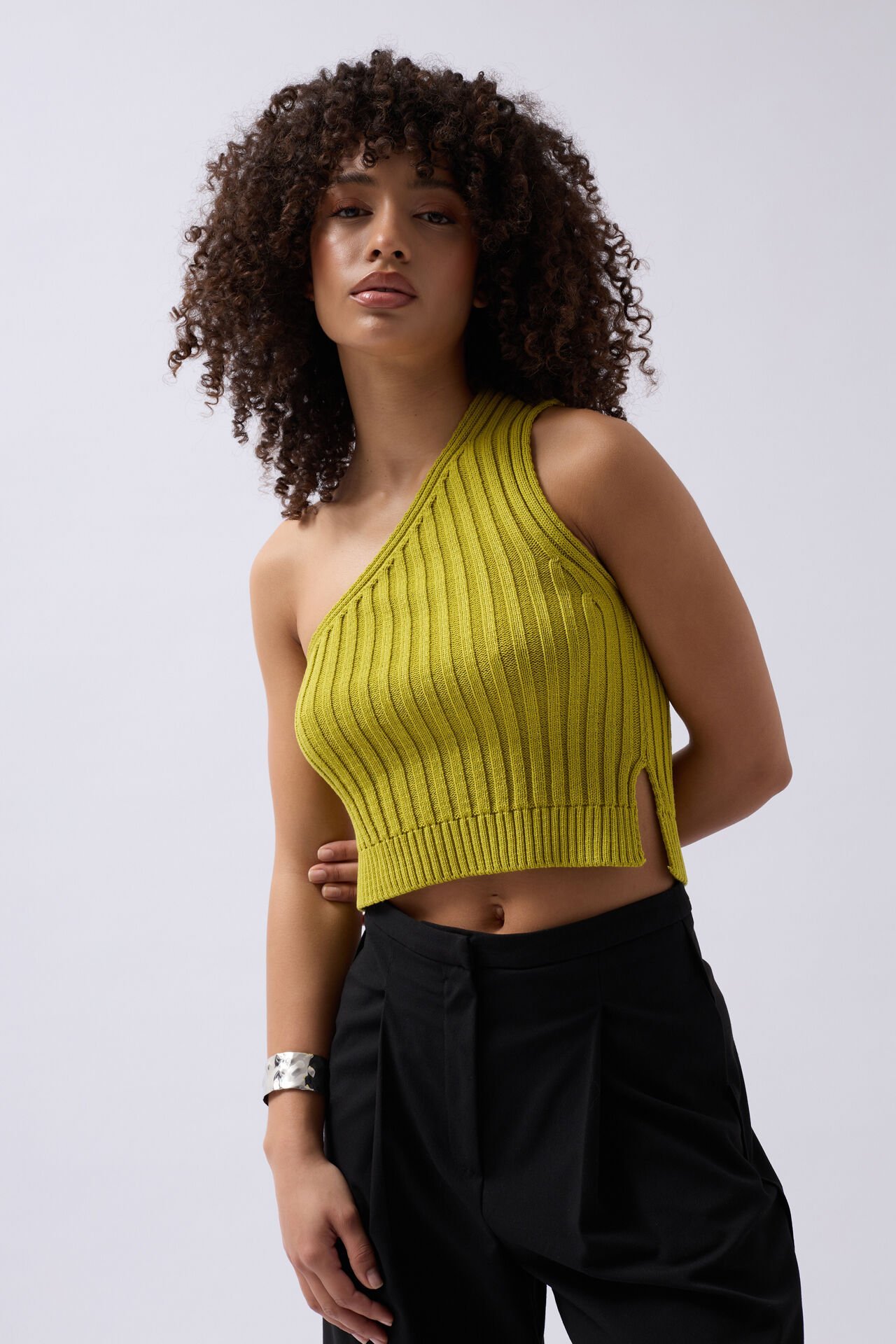 Pamuklu Kumaş, Yumuşak Dokulu, Tek Omuz Triko Crop