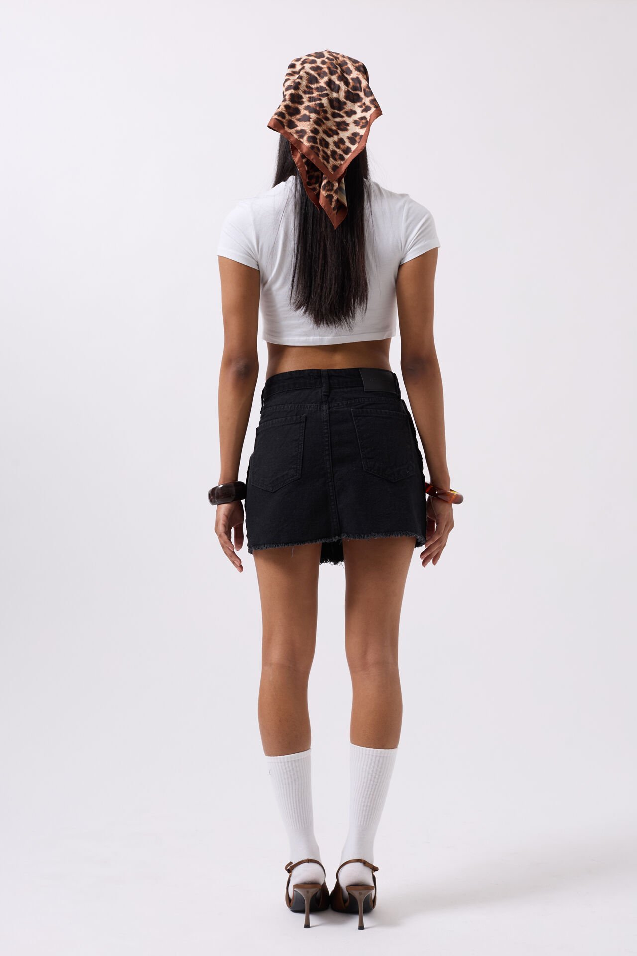 Toptan Ters Detay Denim Mini Siyah Etek