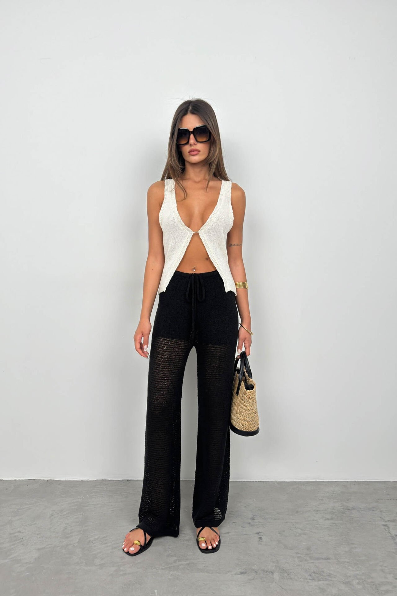 Tünel Detay, Düşük Bel, Bol Paça, Ajurlu Örgü Pantolon