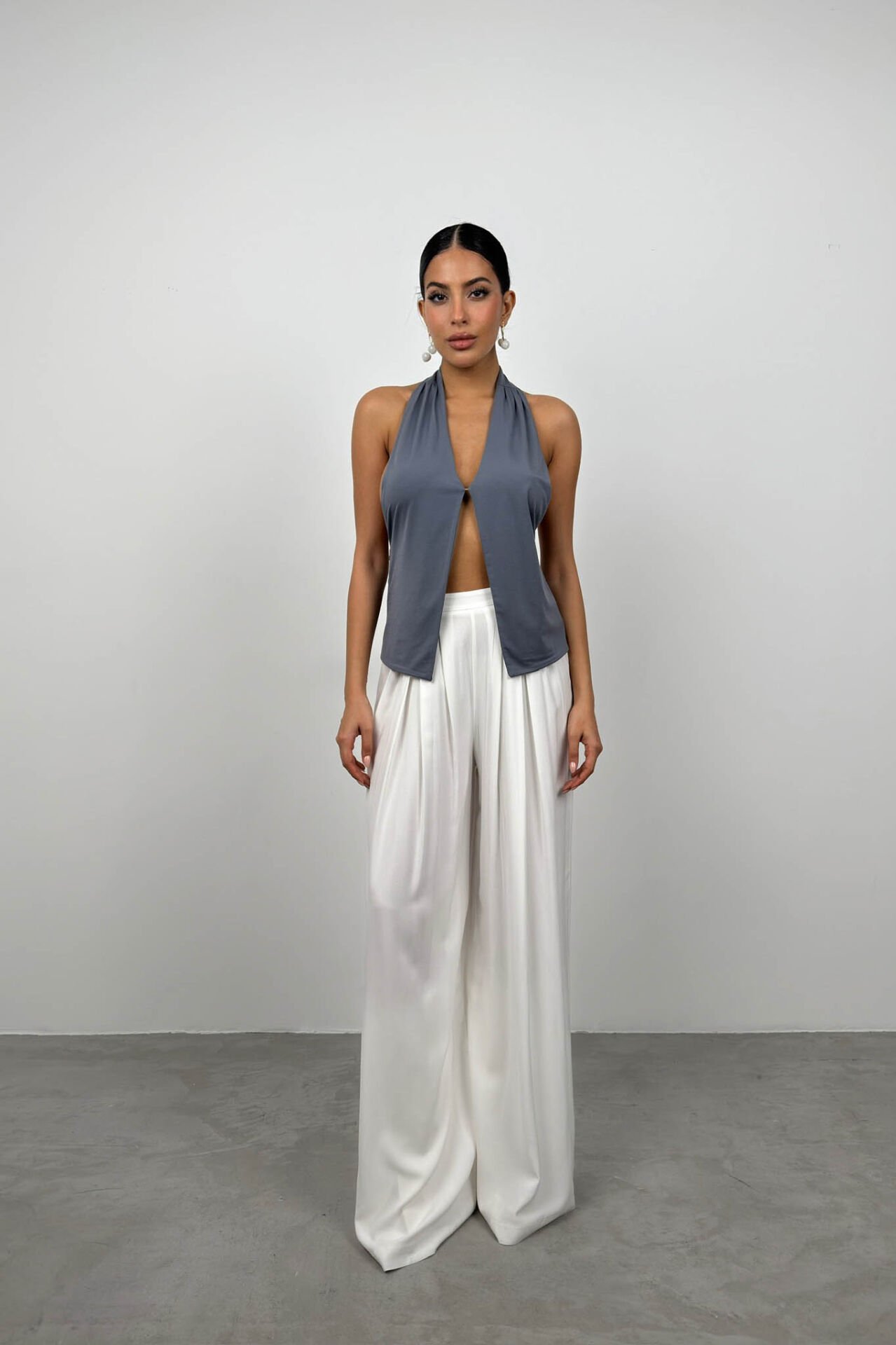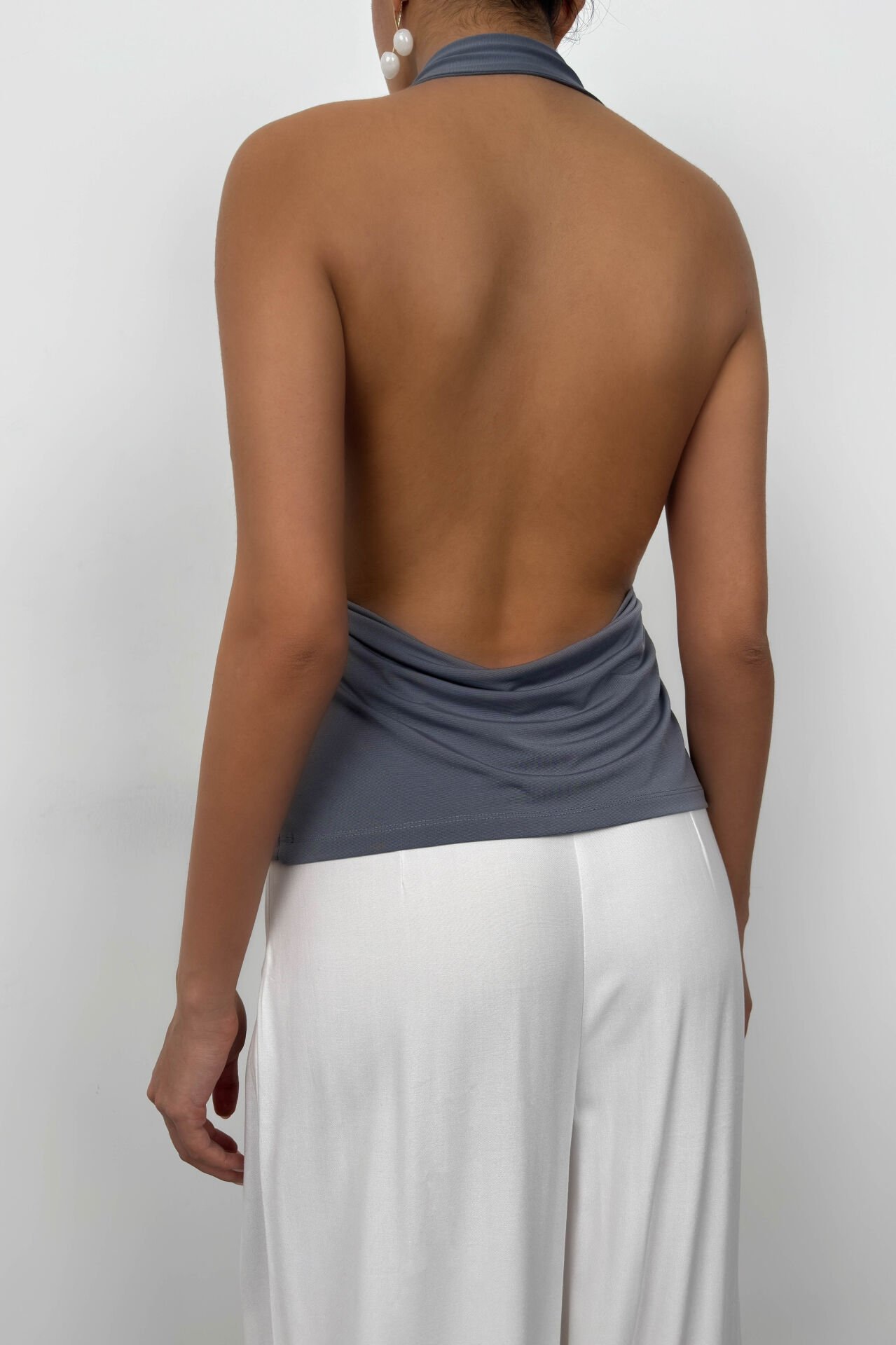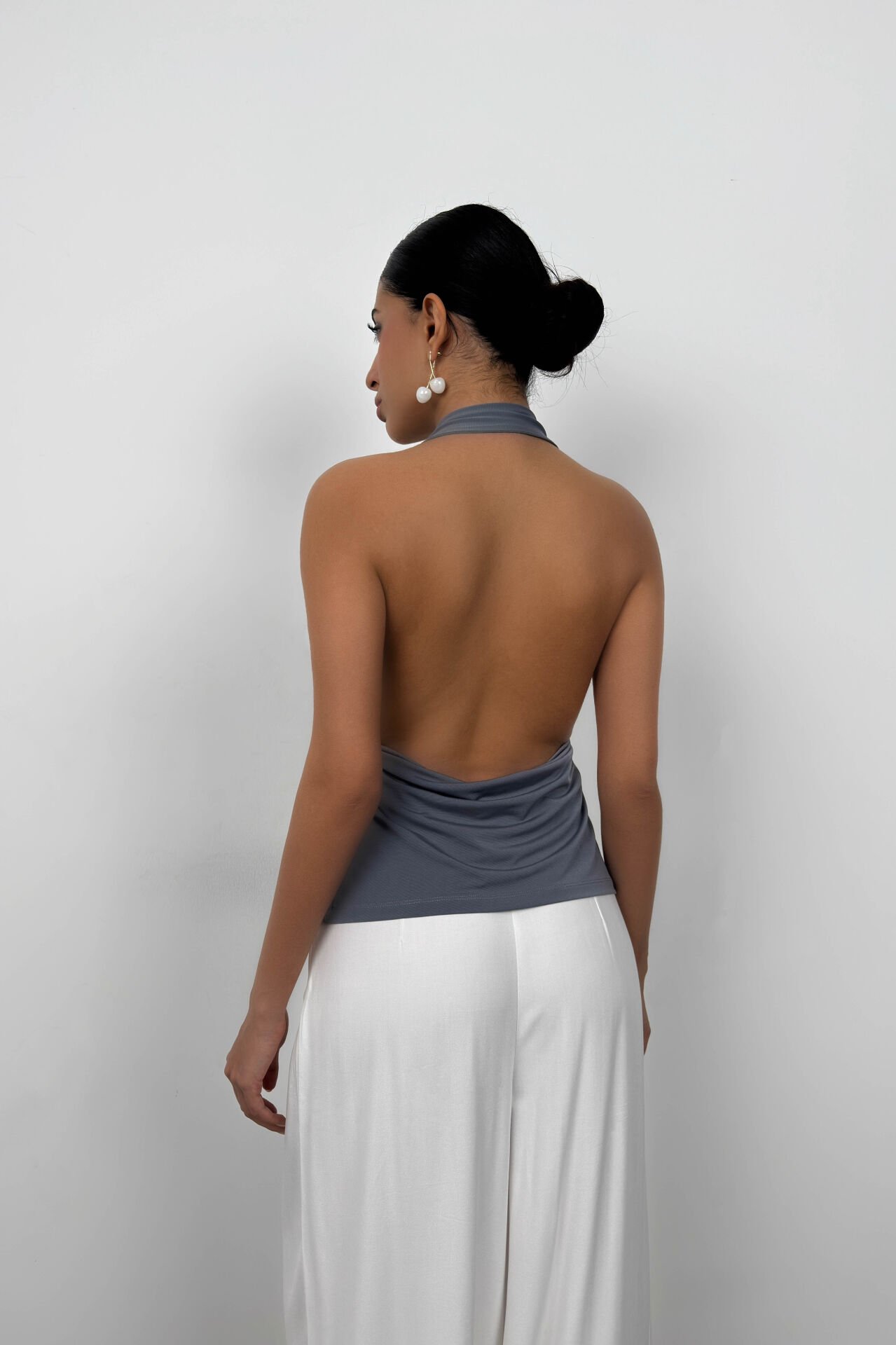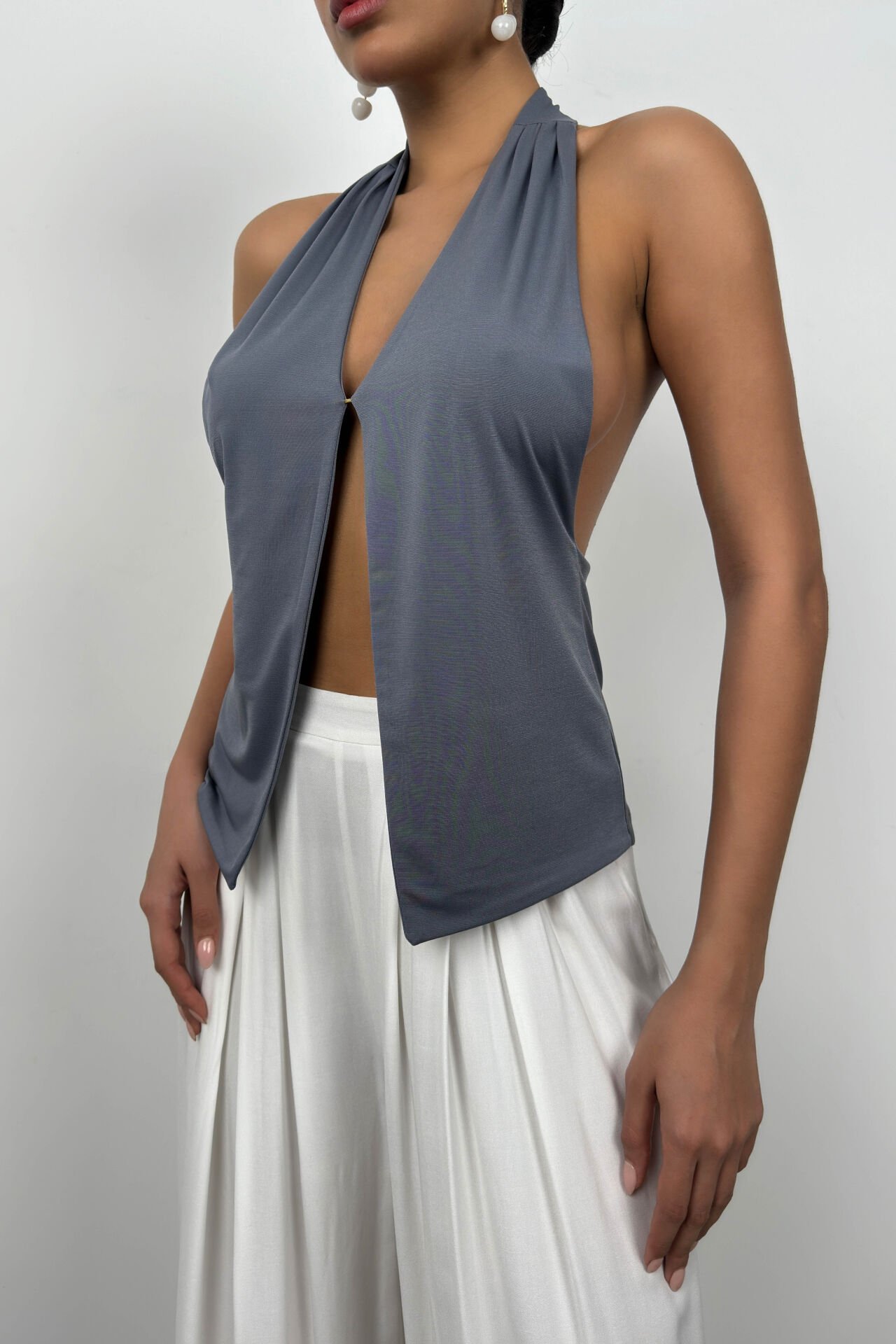Toptan V Yaka Sırt Dekolte Gri Bluz