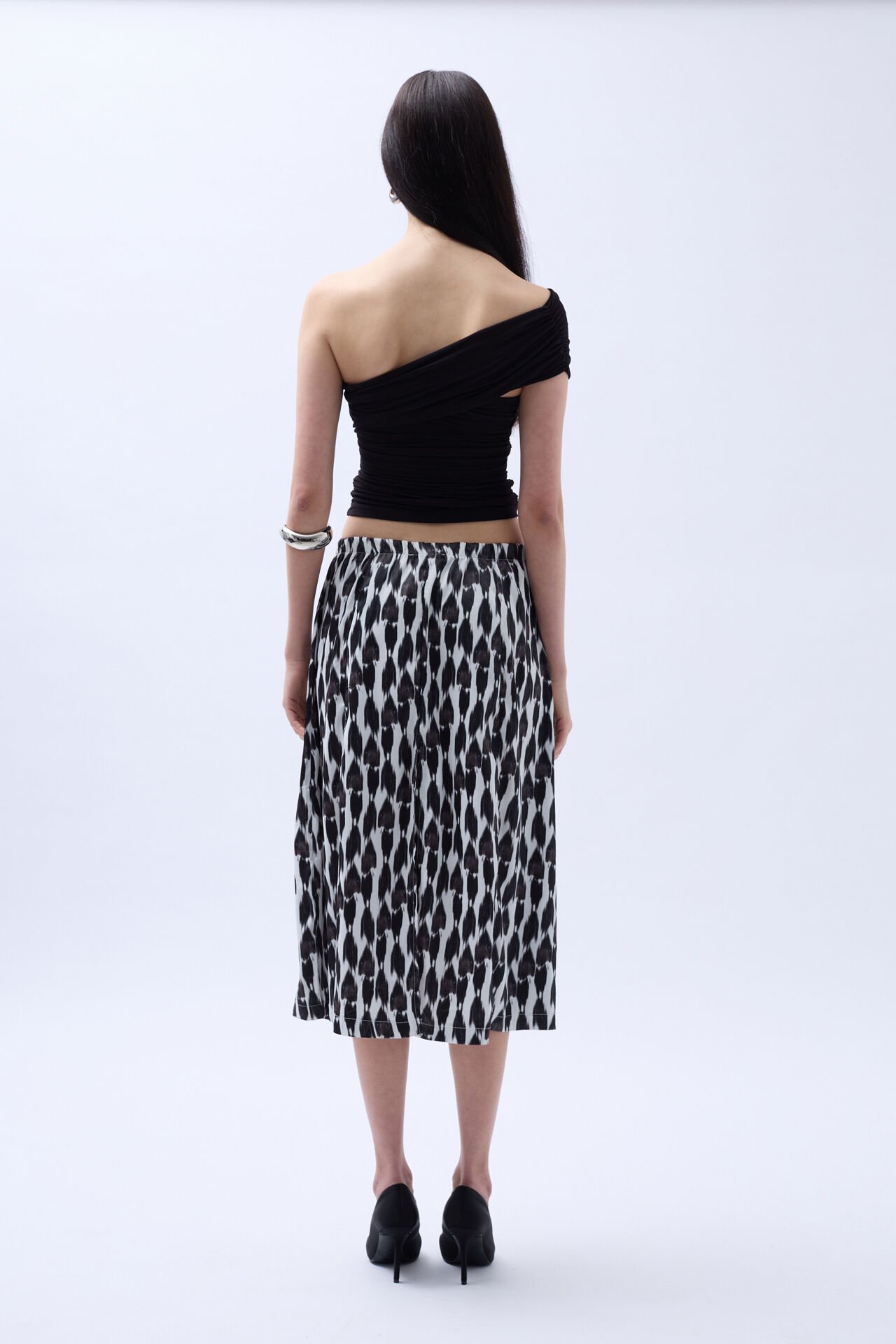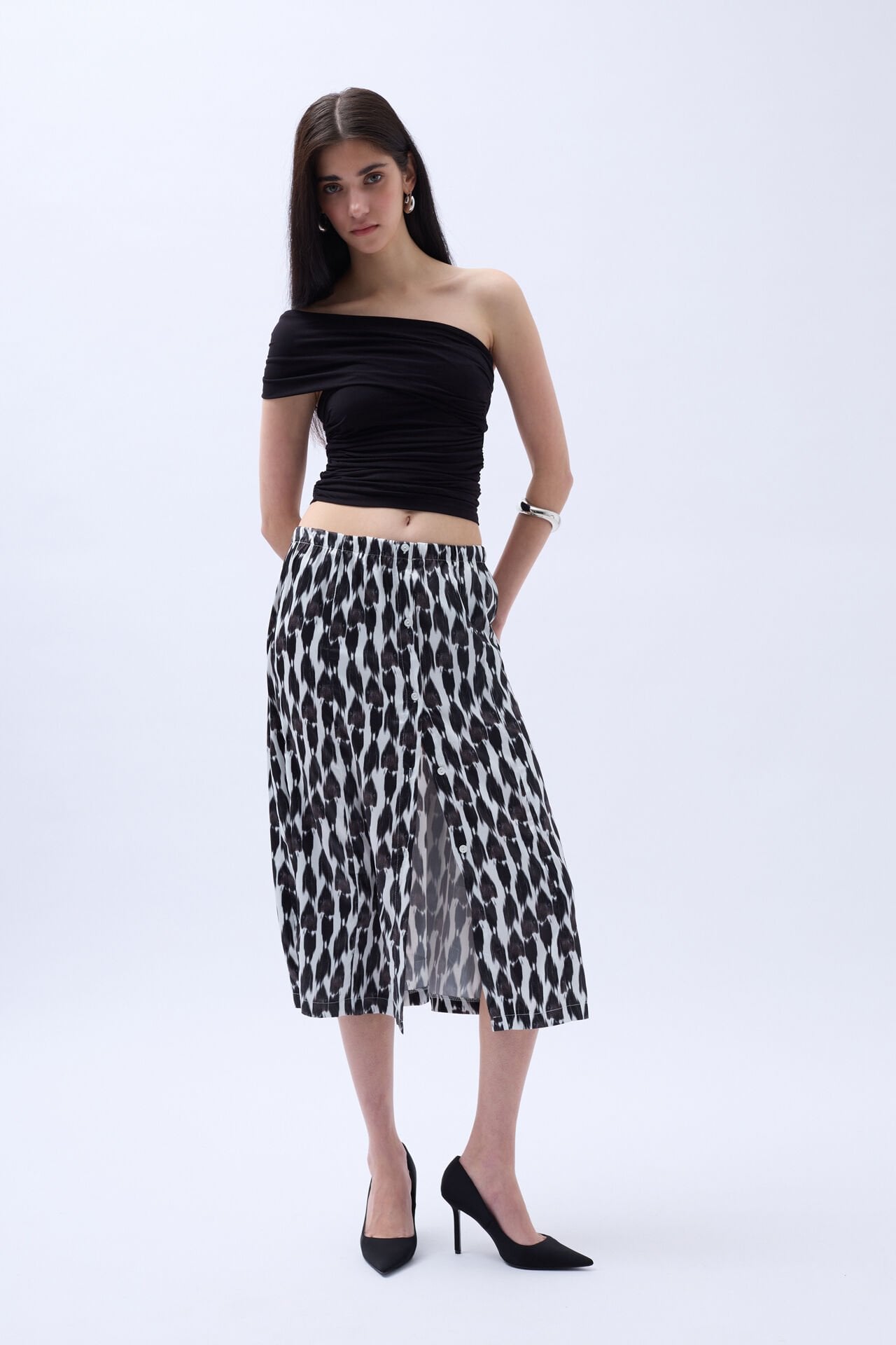 Toptan Yanı Yırtmaçlı Desenli Siyah Etek