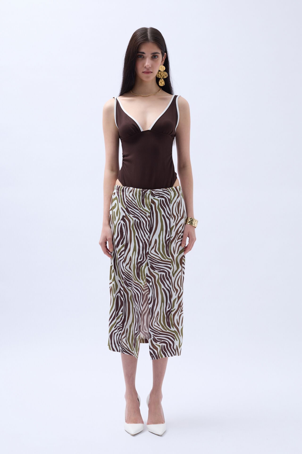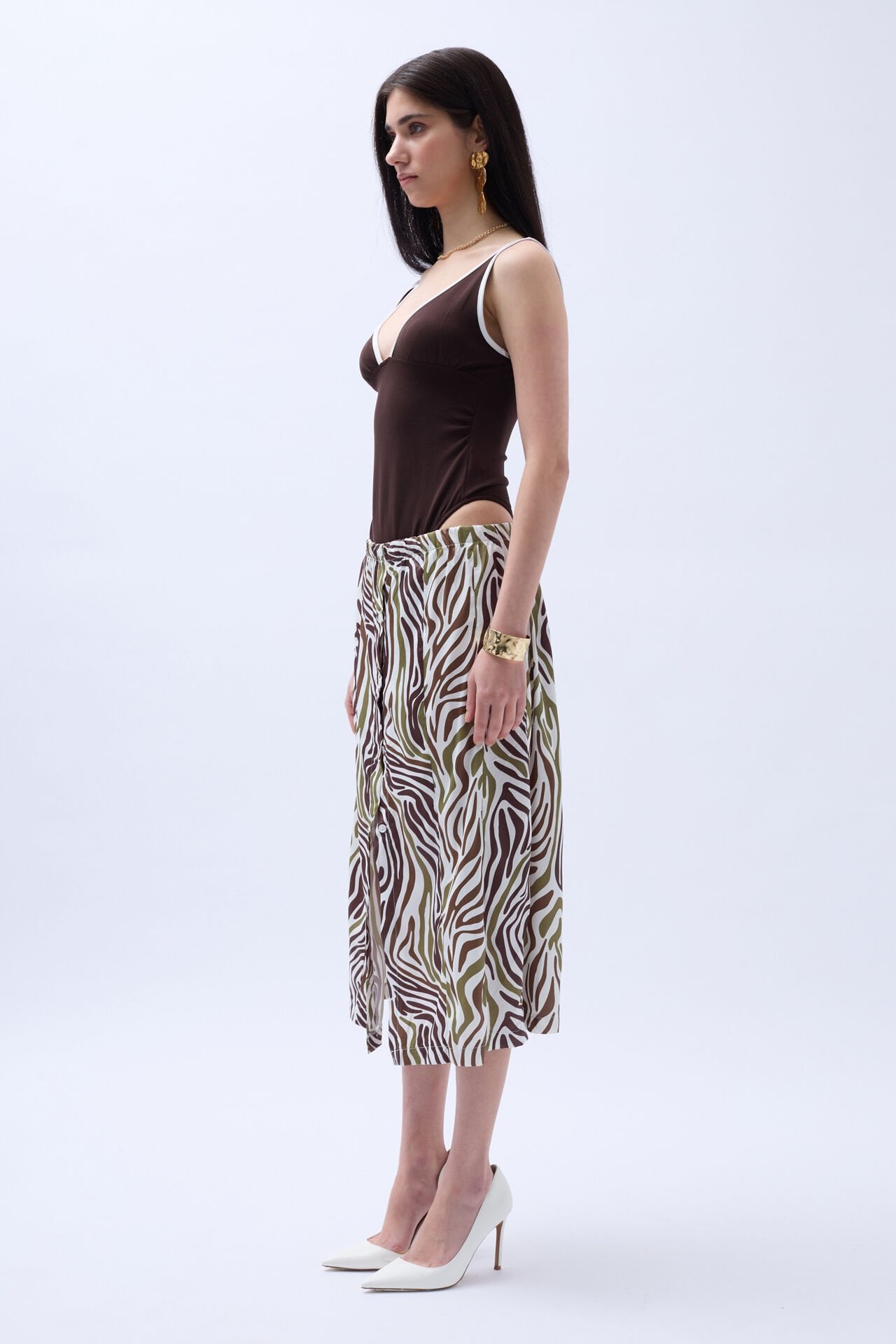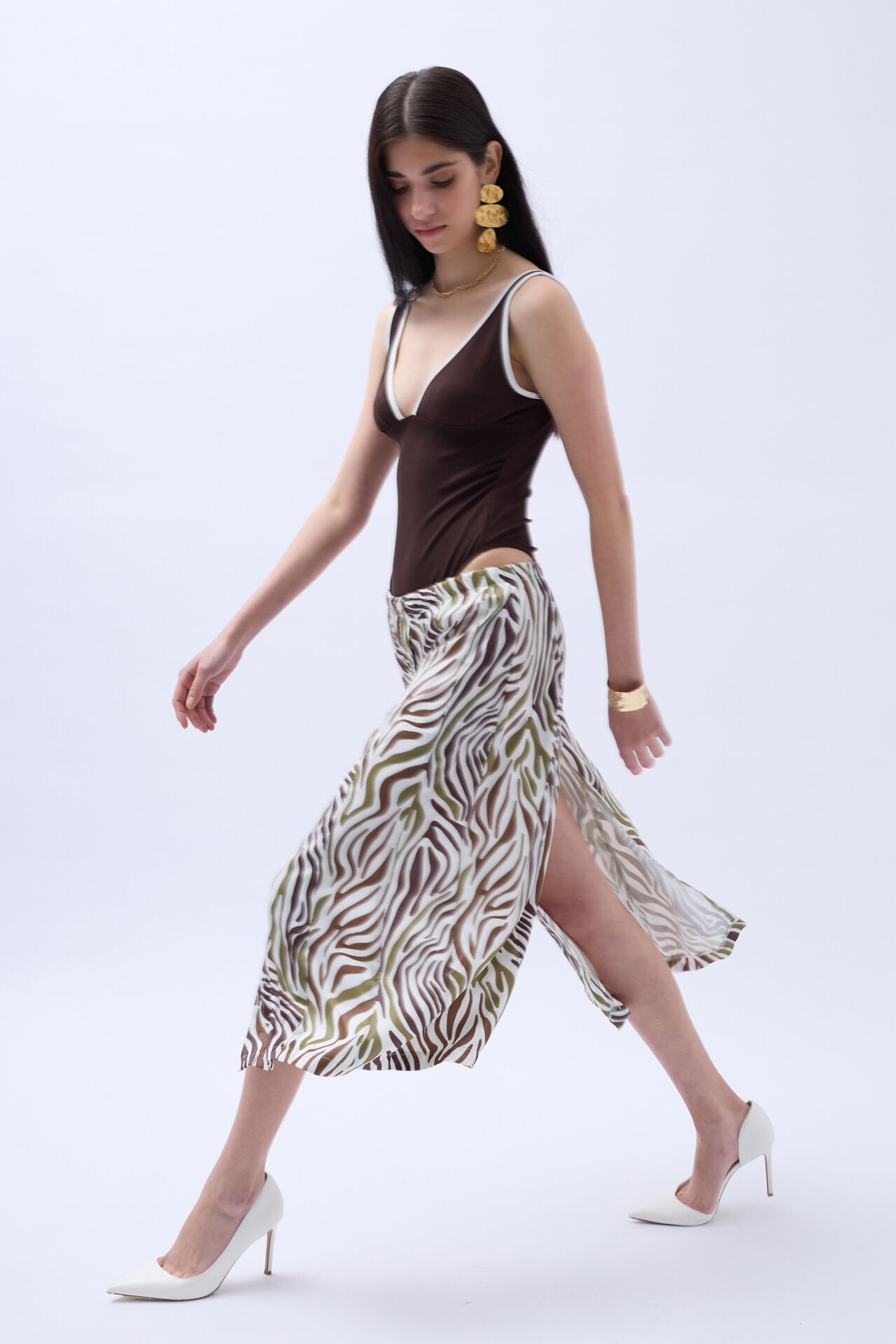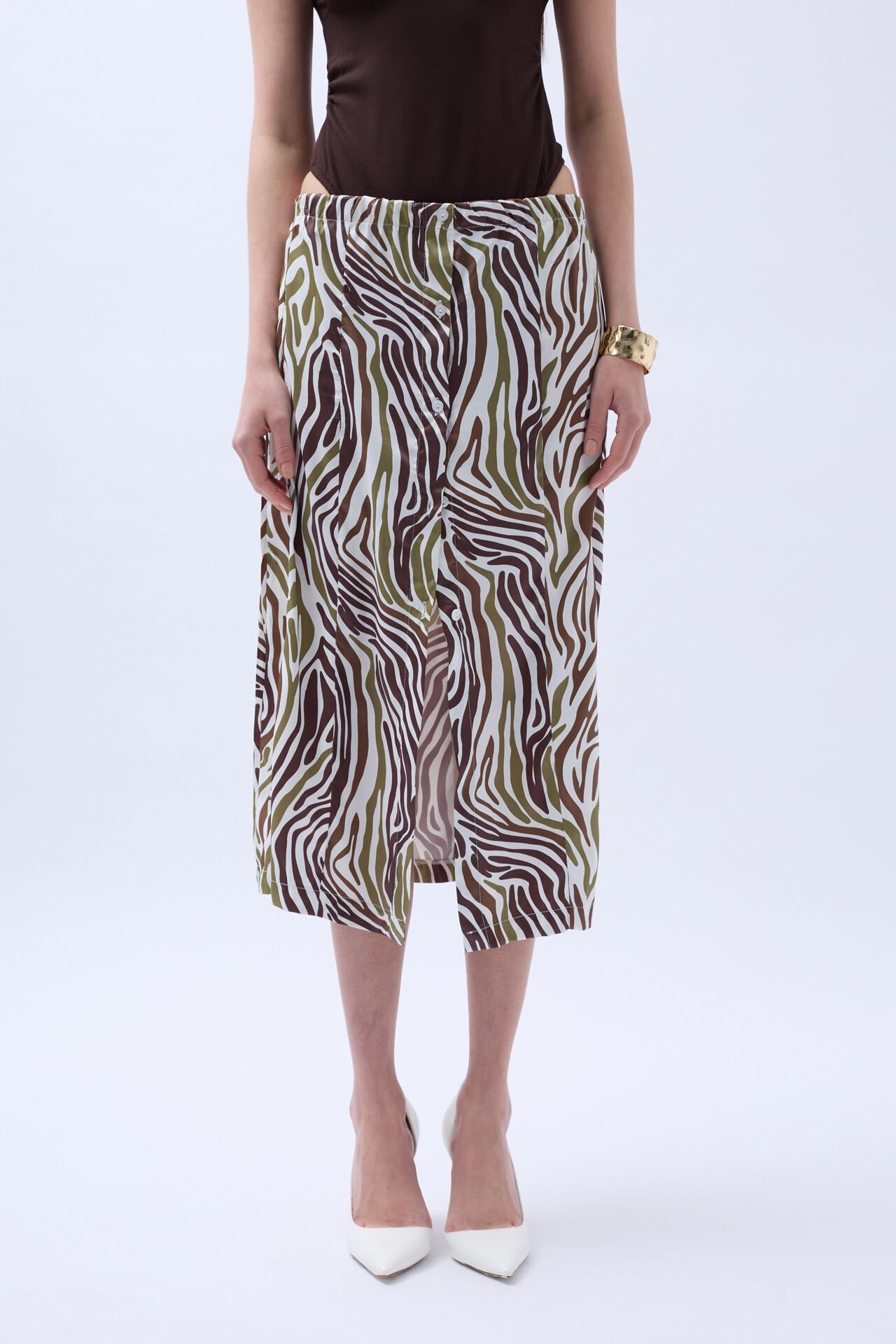 Toptan Yanı Yırtmaçlı Desenli Yeşil Etek