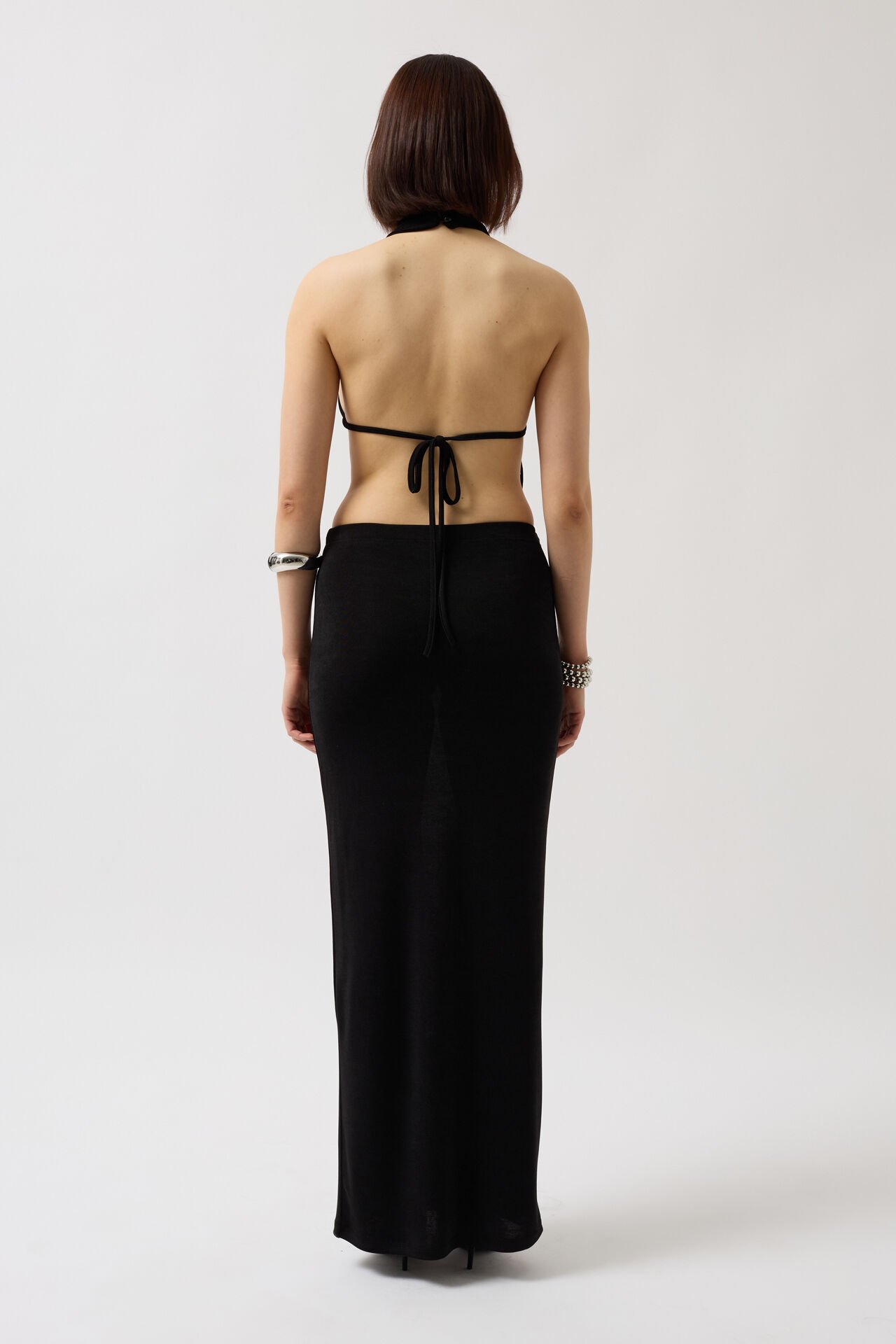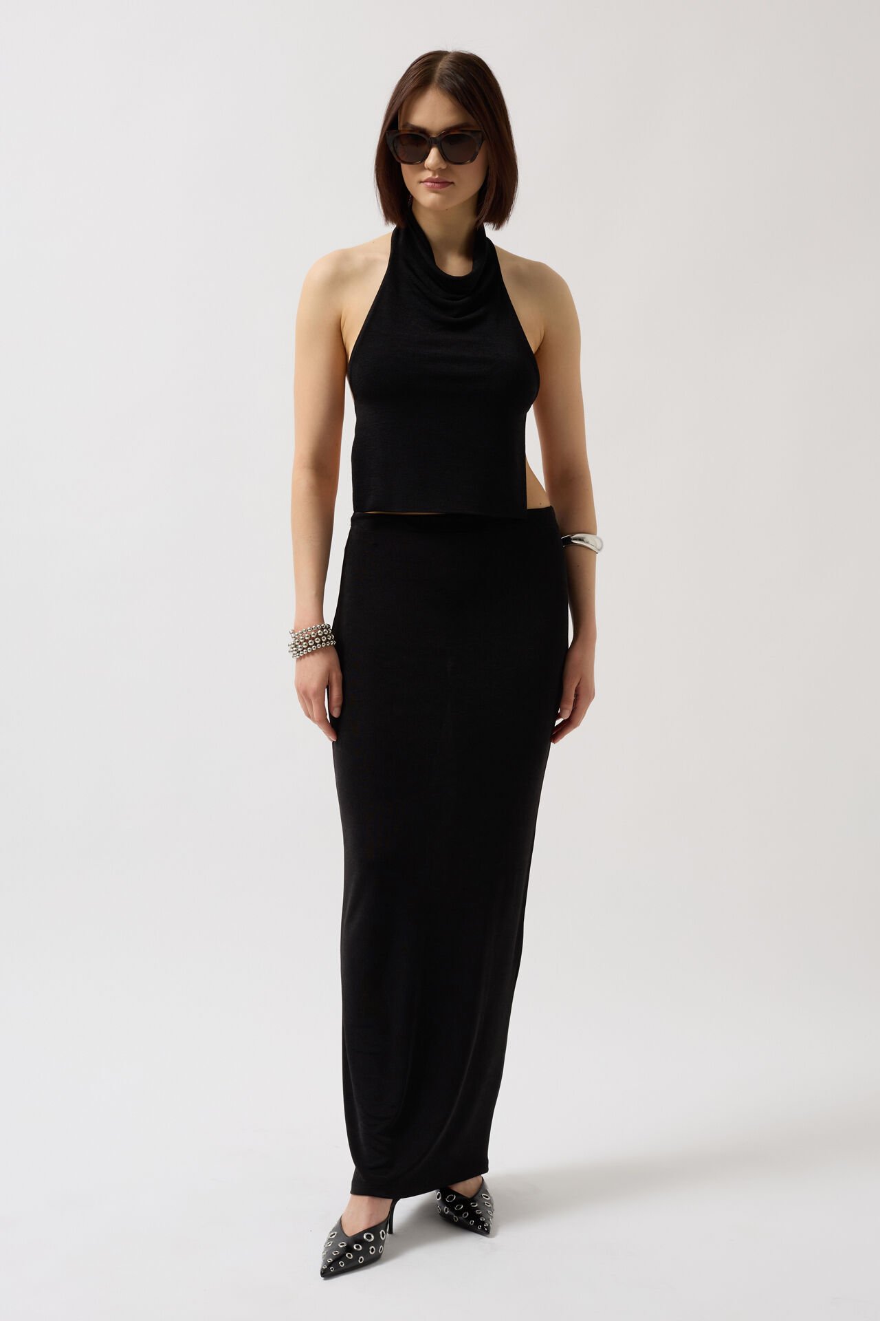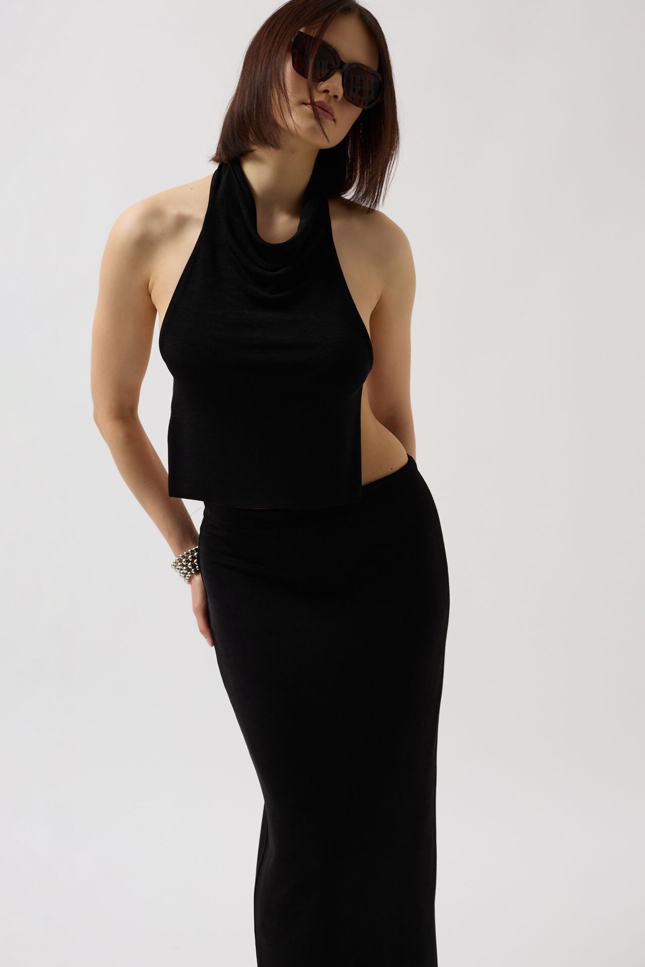 Toptan Yarım Balıkçı Sırt Dekolte Crop Siyah Bluz