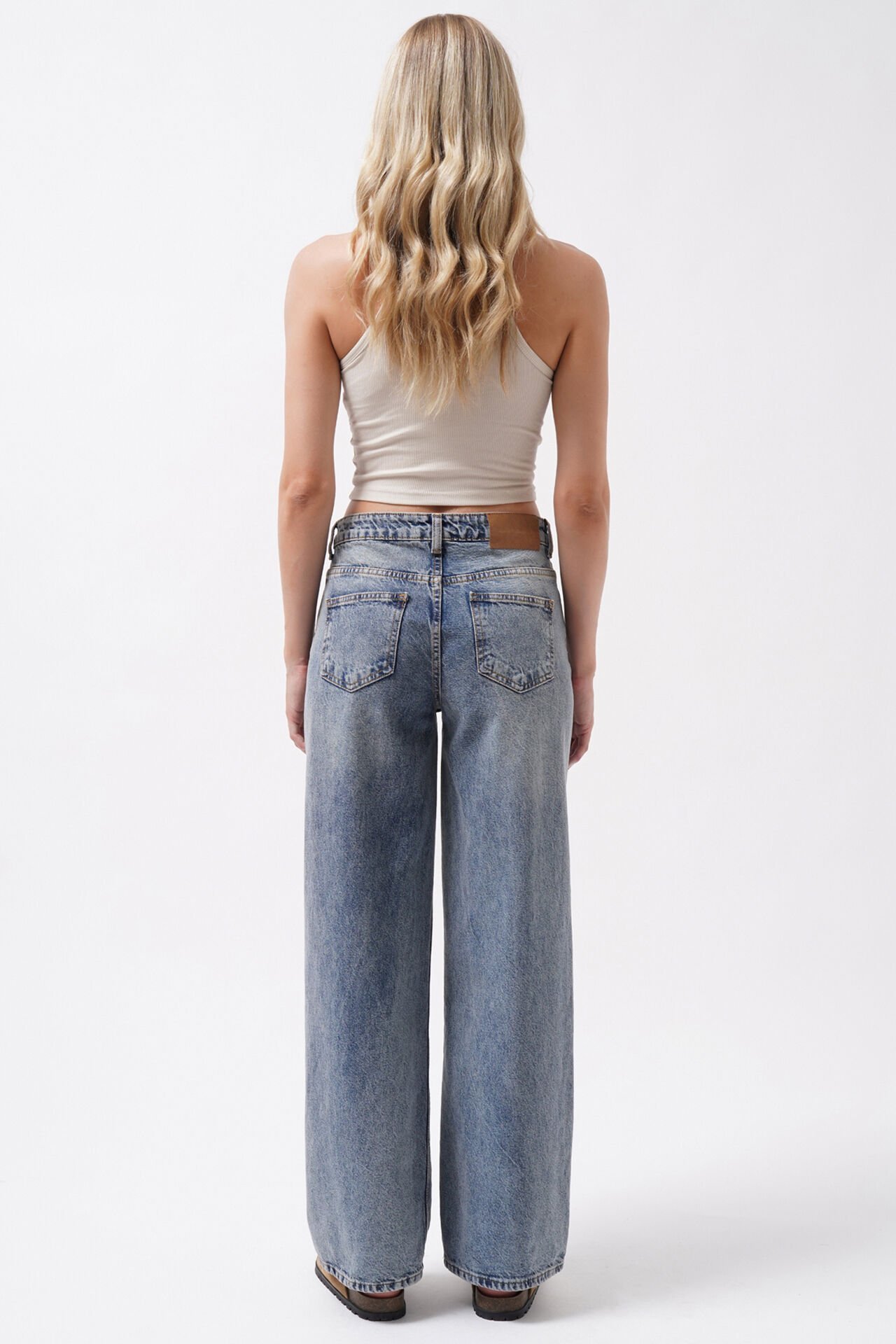 Toptan Yıkama Detay Yüksek Bel Mavi Jean