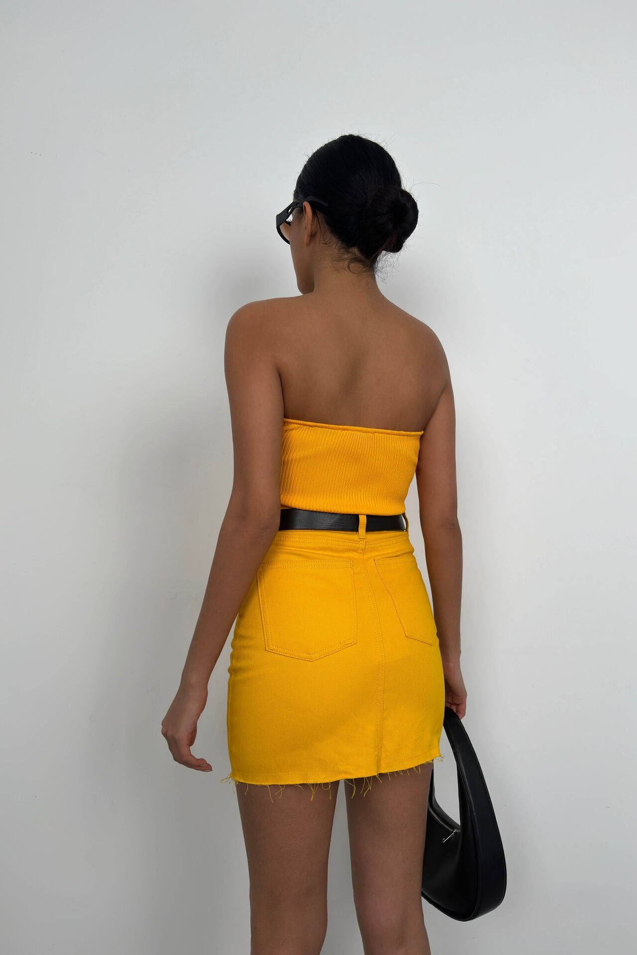 Yüksek Bel, Vücuda Yapışan, Mini, Denim Etek